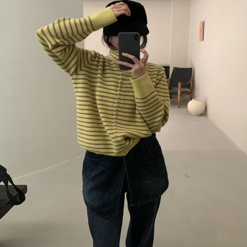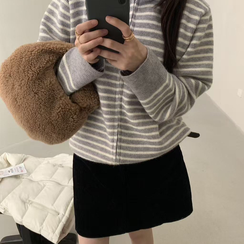 egg鸡蛋家秋冬条纹拉链毛衣外套