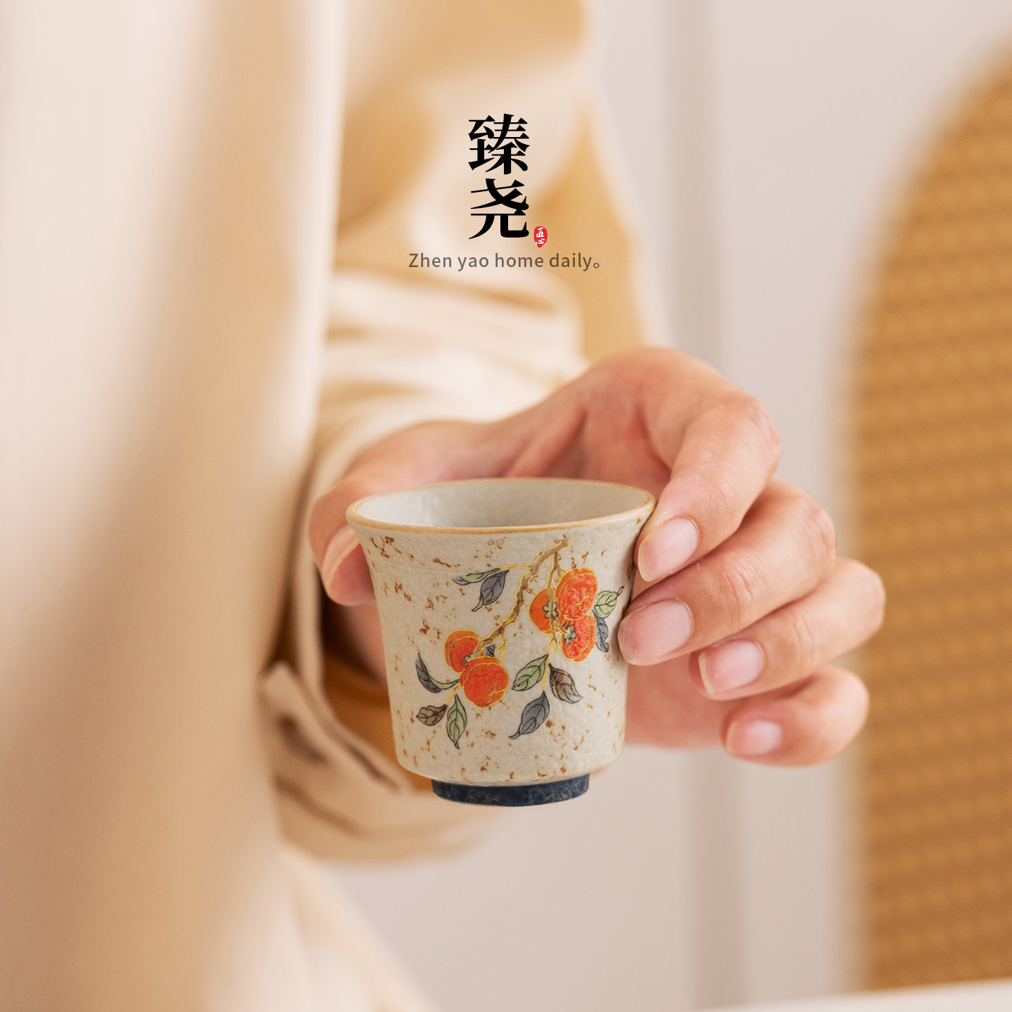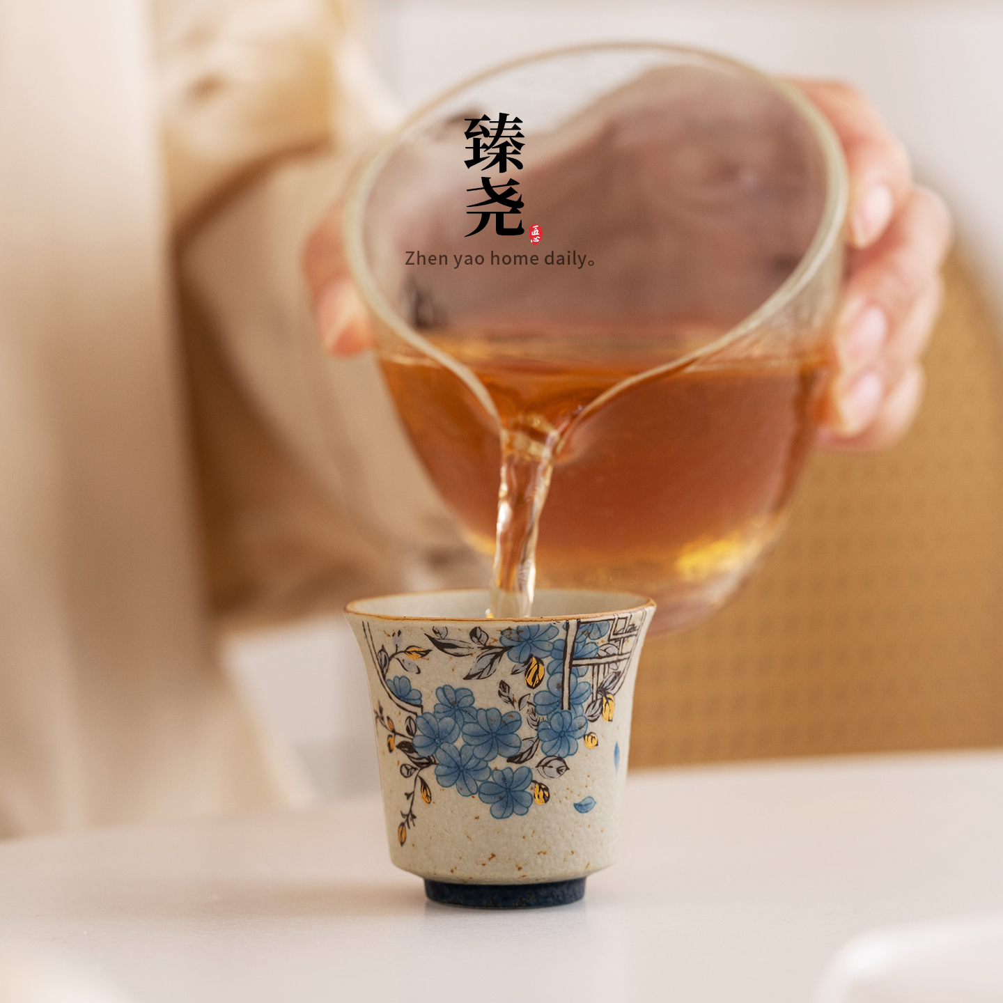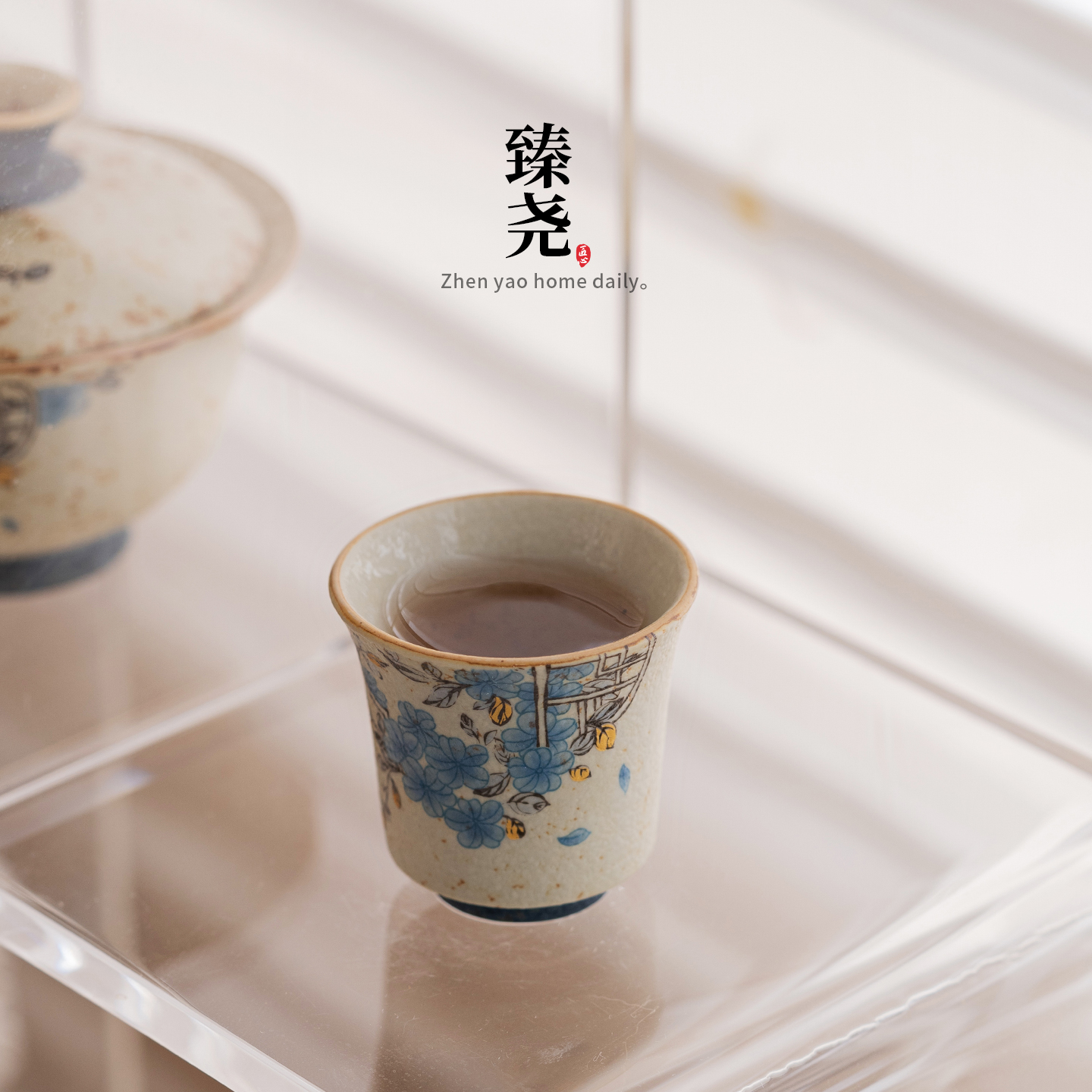 青花火红石复古茶杯陶瓷主人杯客杯品茗杯功夫茶具茶杯家用普洱杯