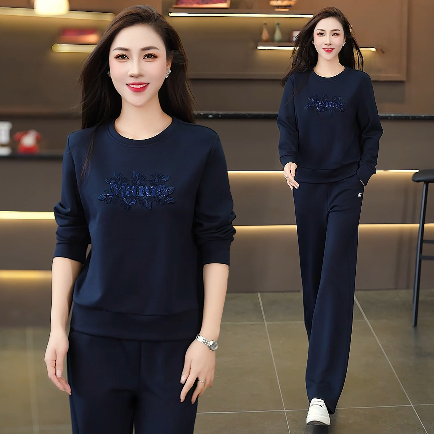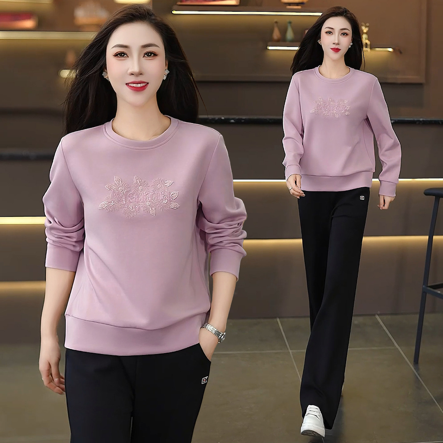 休闲运动服套装女春秋2025新款妈妈圆领卫衣中老年女装春装两件套