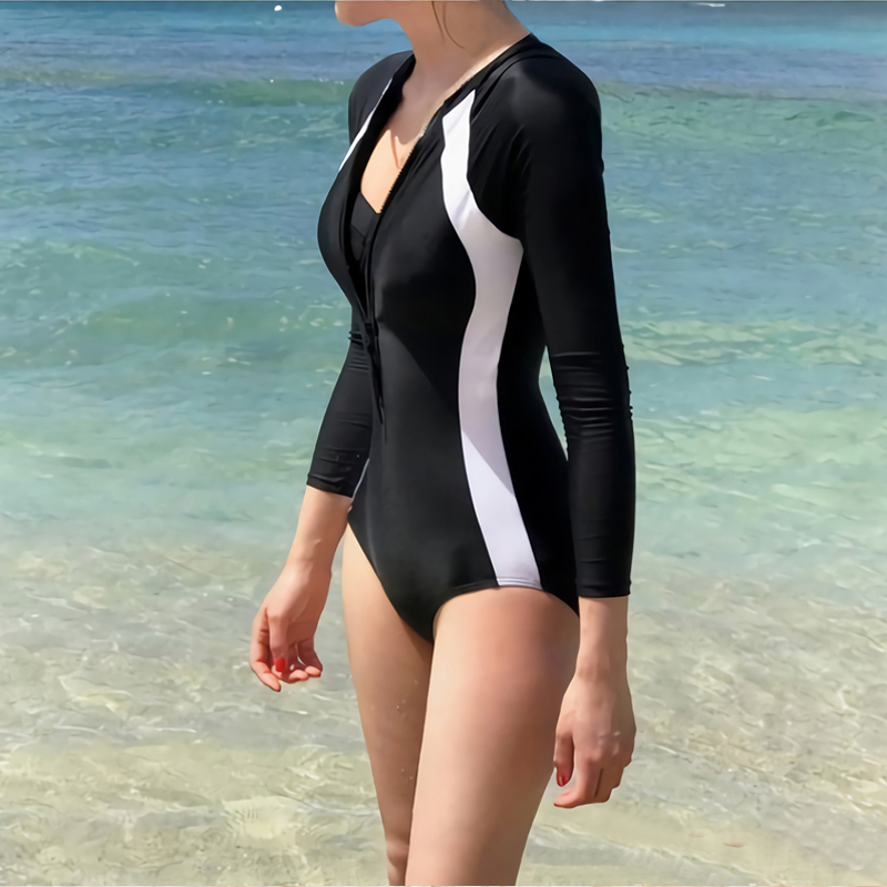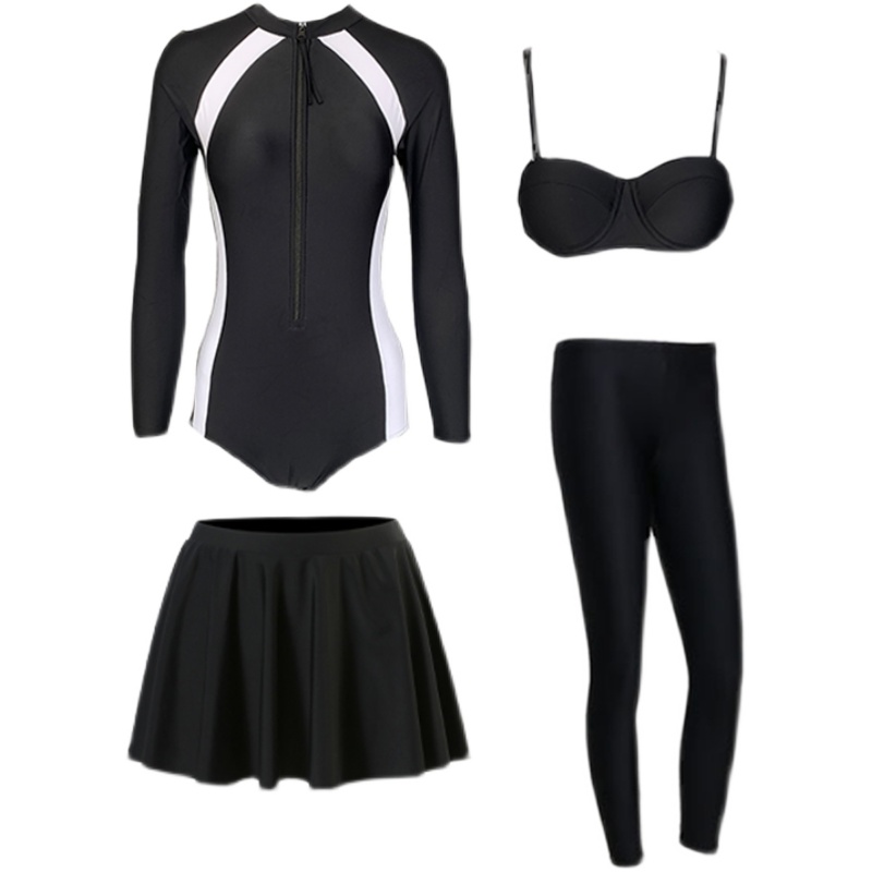潜水服保守泳衣女显瘦长袖冲浪服连体裙式水母防晒游泳衣温泉泳装