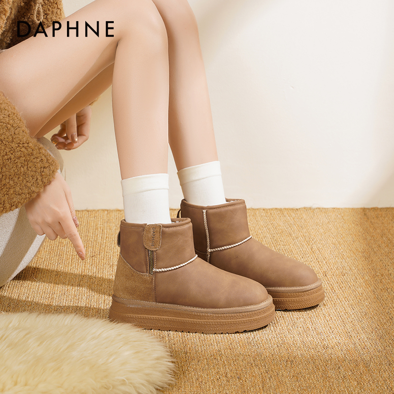 达芙妮厚底雪地靴女2025新款冬季加绒保暖短筒棉靴东北面包棉鞋女