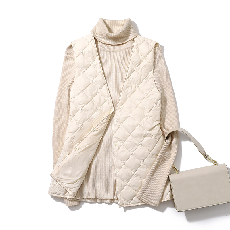 菱格轻薄款90%羽绒服女短款内胆大衣伴侣内搭白鸭绒马甲V领背心
