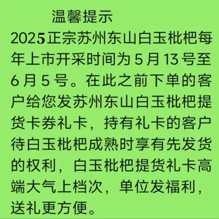 超甜正宗苏州东山白玉枇杷白沙枇杷5斤大果当季新鲜水果礼提货券
