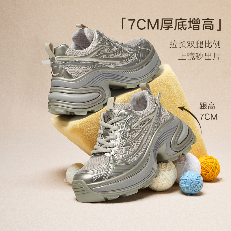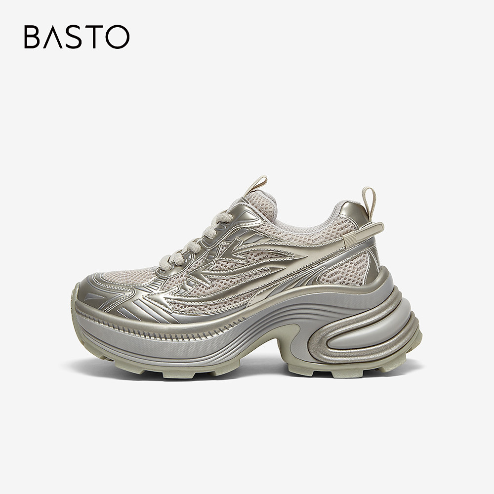 百思图2025春季新款商场同款户外运动老爹鞋厚底女休闲鞋D5210AM5