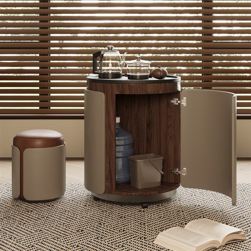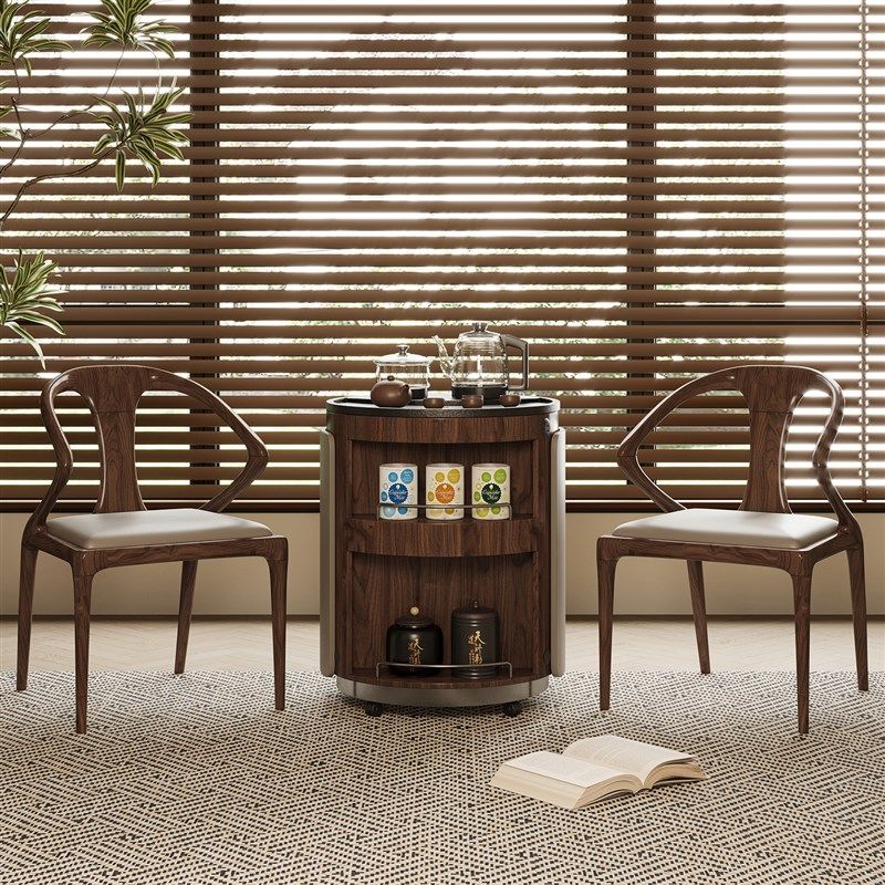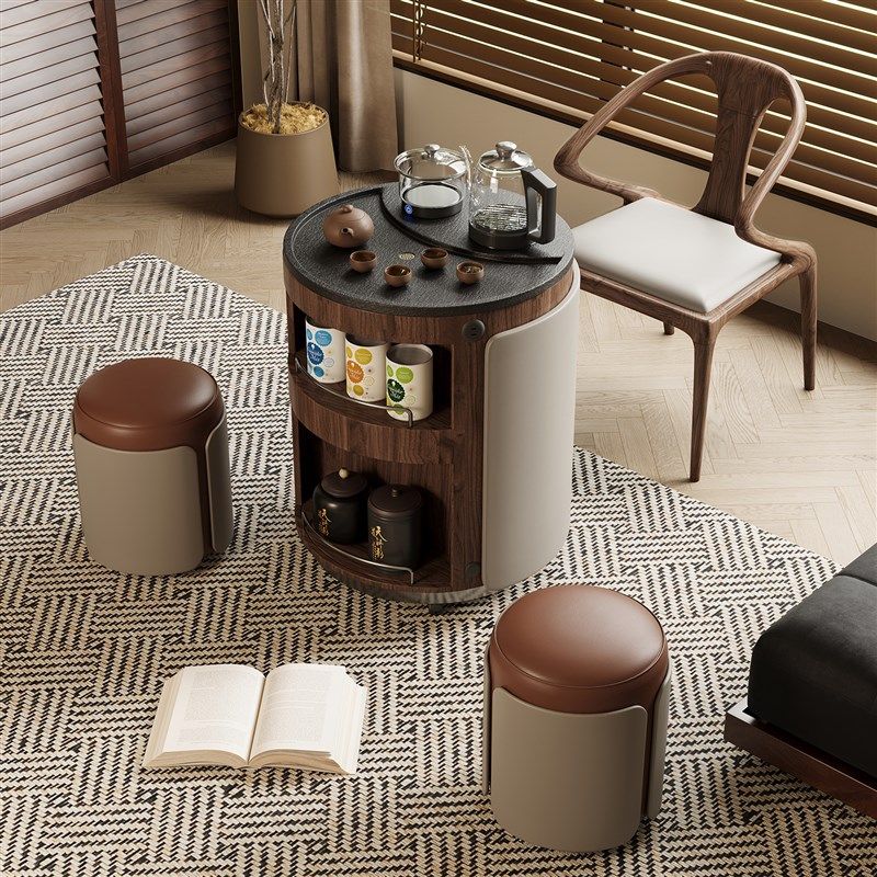 阳台小茶车火烧石茶几沙发边几小户型新中古风木泡茶台