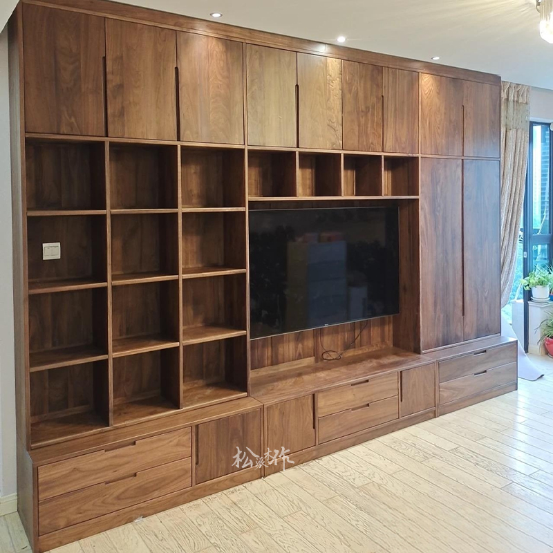 实木全屋定制衣柜卧室衣帽间整体定制红橡樱桃黑胡桃原木家具工厂