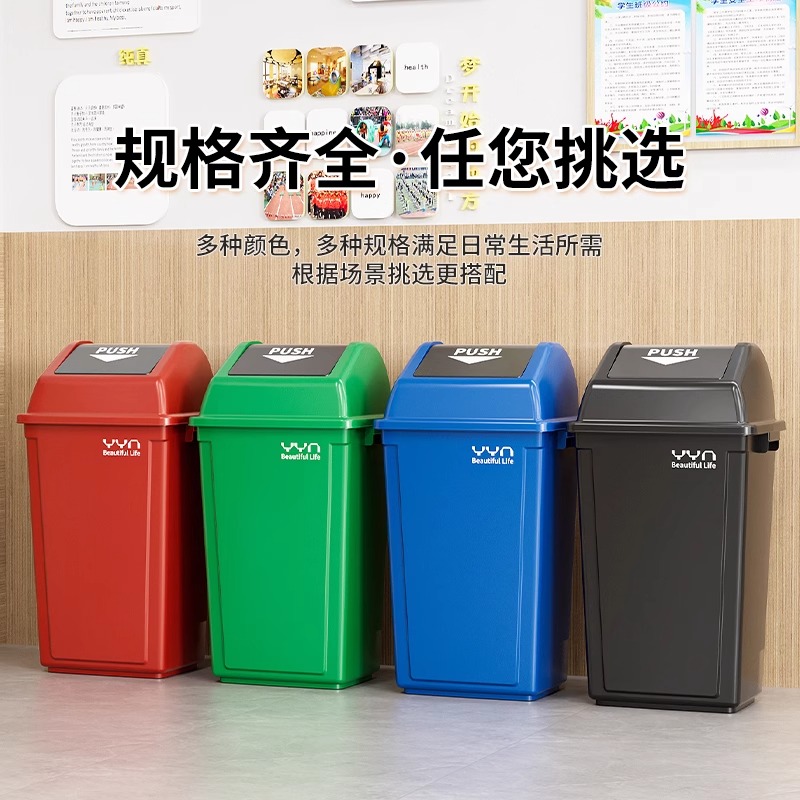 商用摇盖密封超大垃圾桶厨房餐饮卫生间大号方形垃圾箱