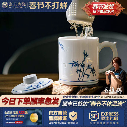 景德镇陶瓷茶杯个人专用高档精致家用办公待客茶水分离高端老板杯