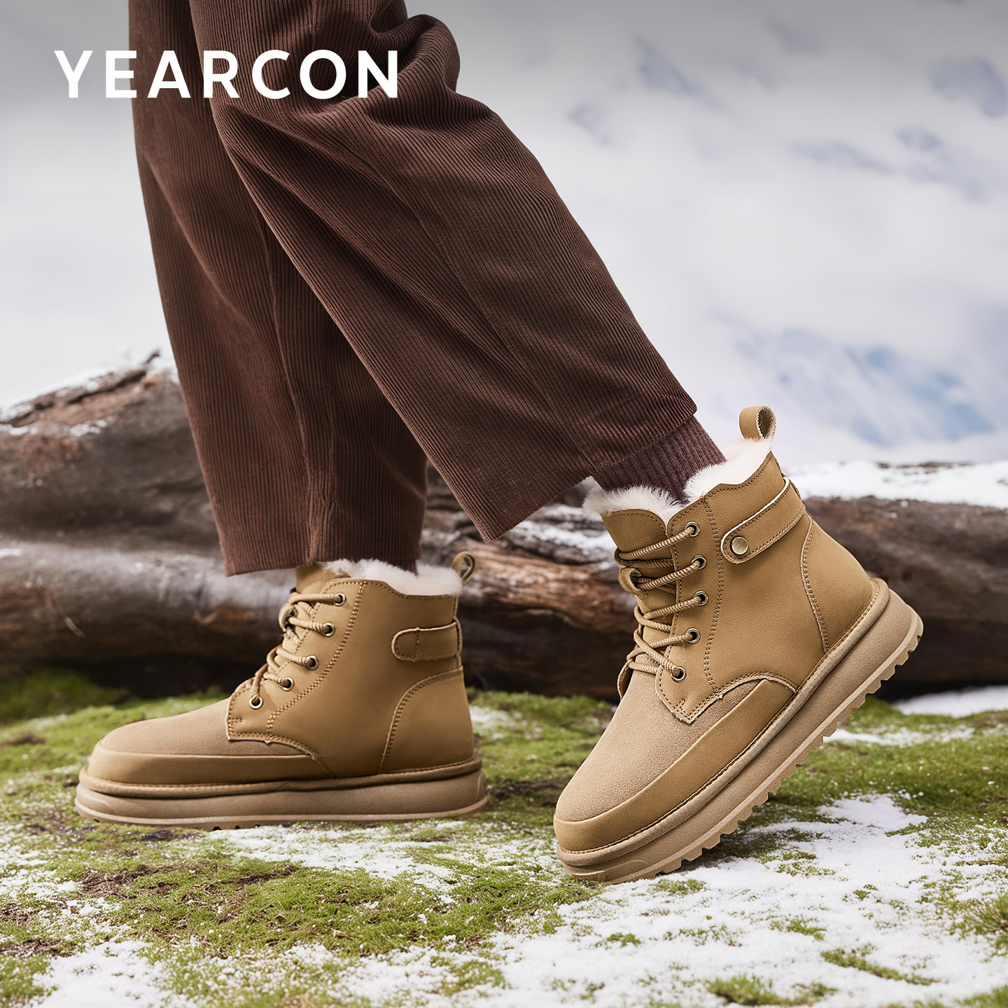 意尔康雪地靴男士2025冬季新款高帮系带户外棉鞋羊毛保暖御寒棉靴