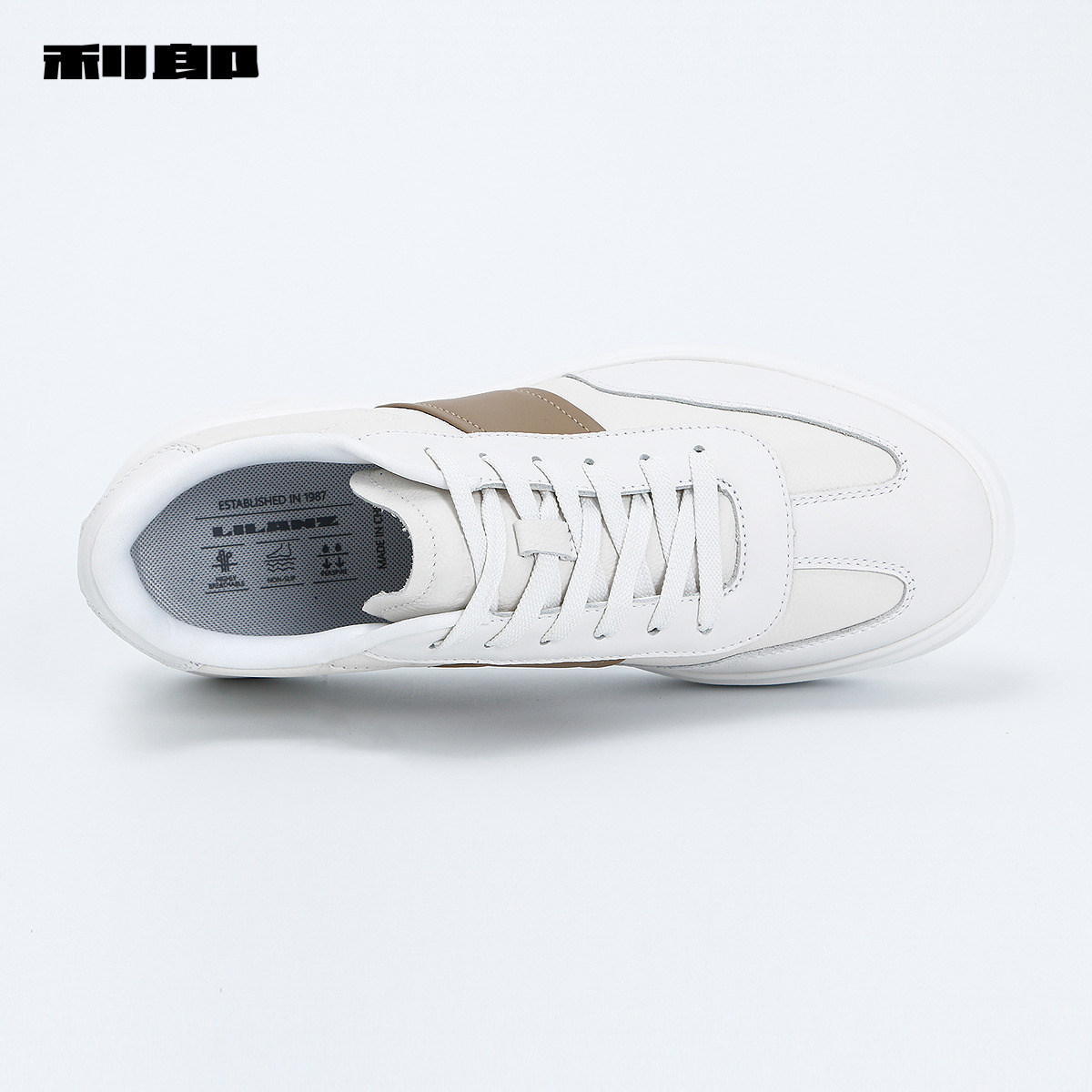 利郎奥莱撞色牛皮革小白鞋板鞋男