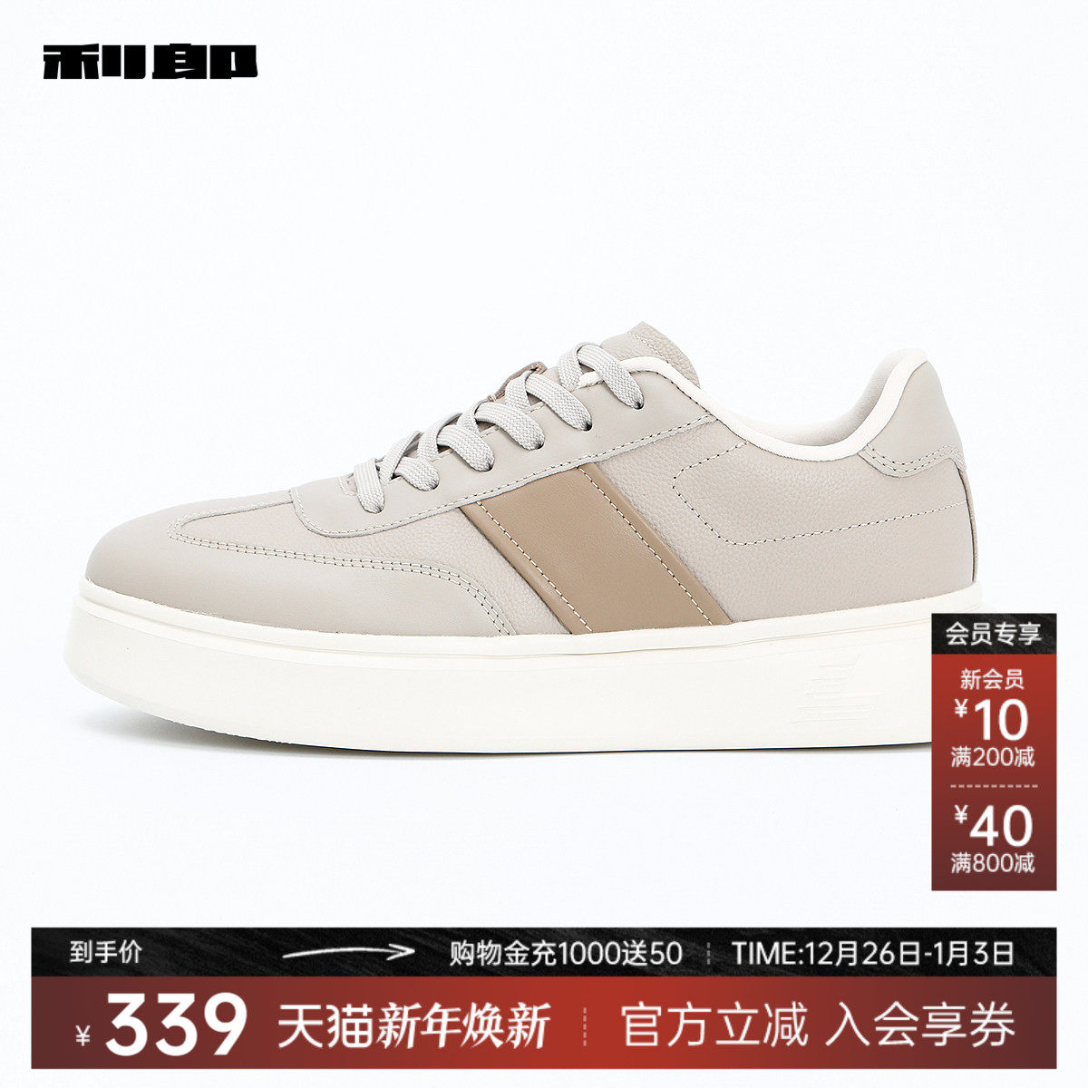 利郎奥莱 低帮板鞋男士2025秋冬拼接户外百搭牛皮革小白鞋鞋子男