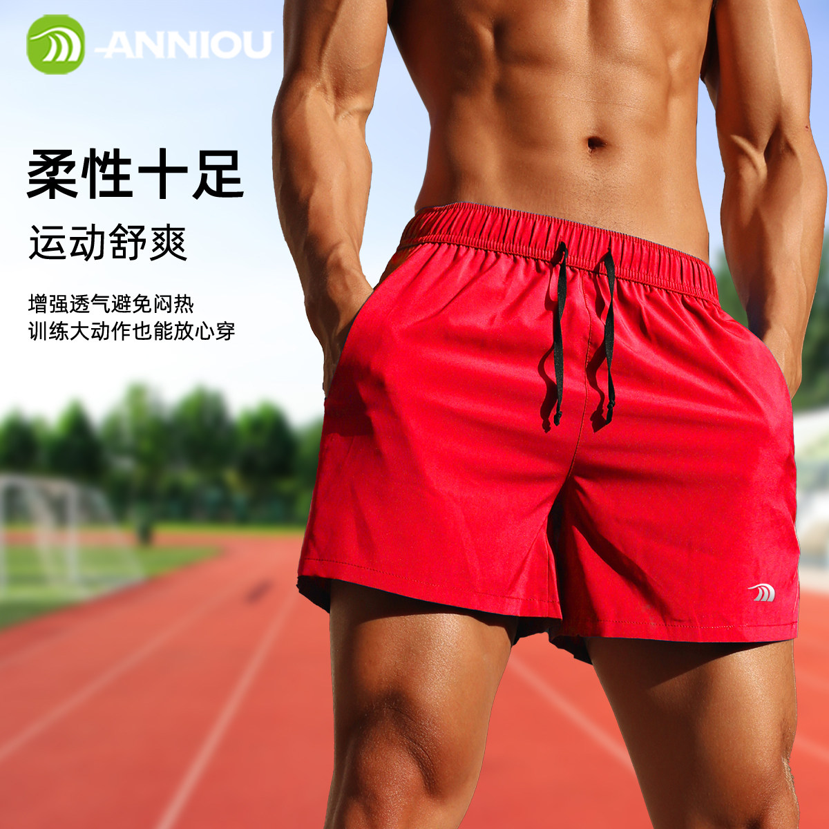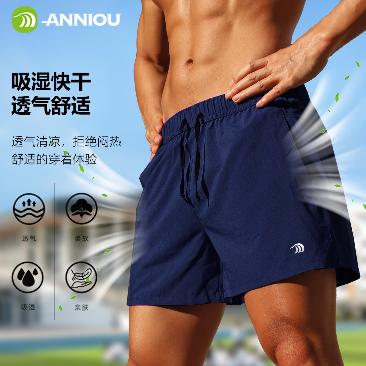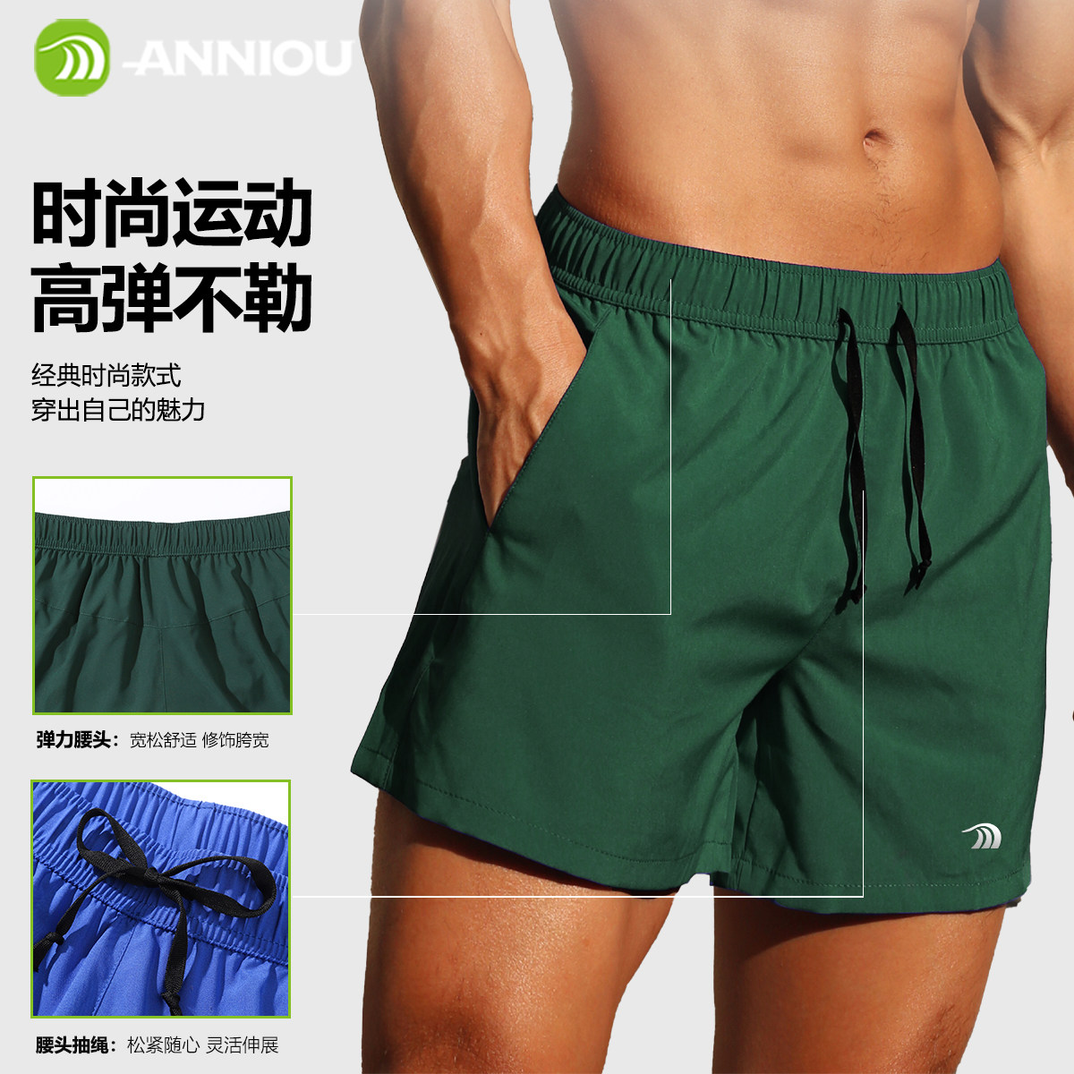 安尼欧夏季健身短裤男士跑步训练四分裤休闲健身速干双层运动短裤