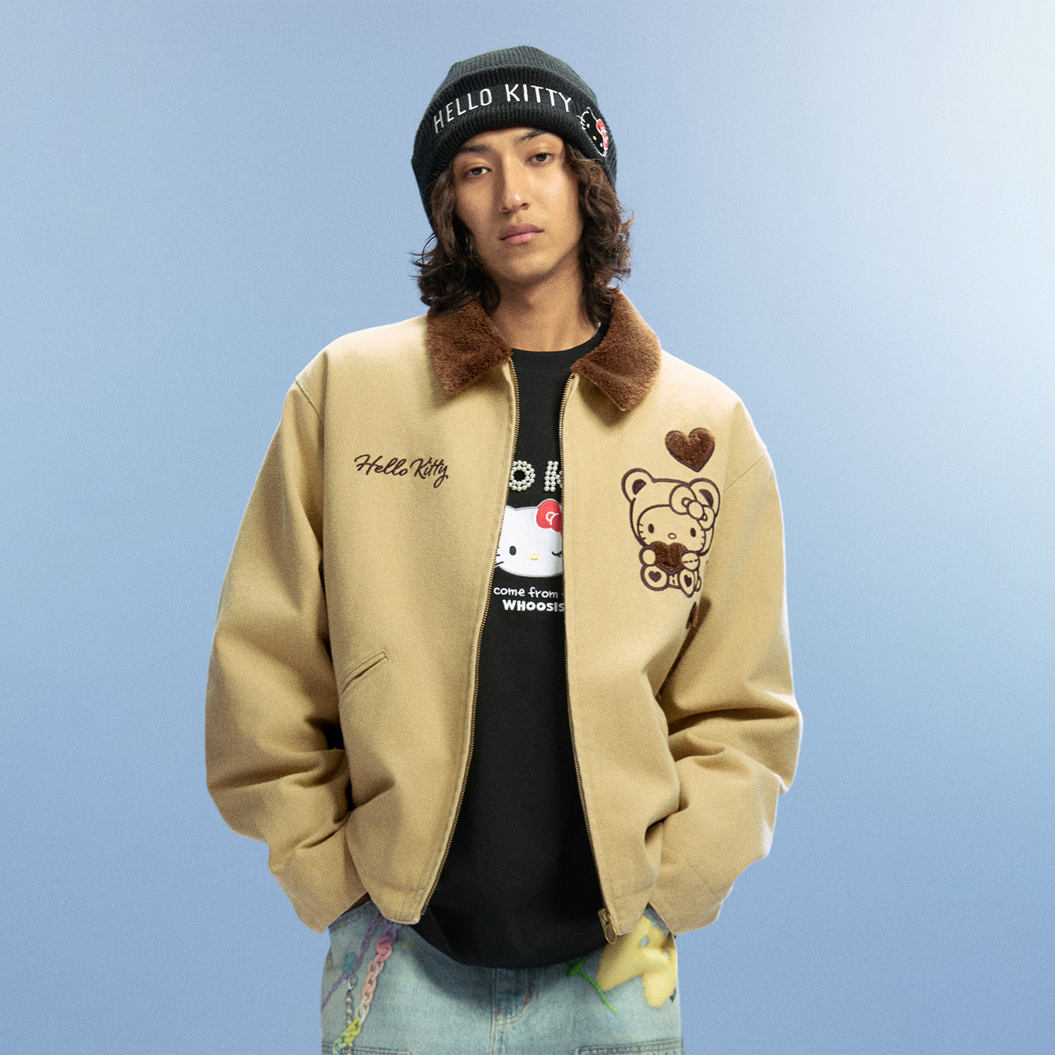 【HELLO KITTY官方联名】WHOOSIS 爱心小熊底特律夹克外套秋男女
