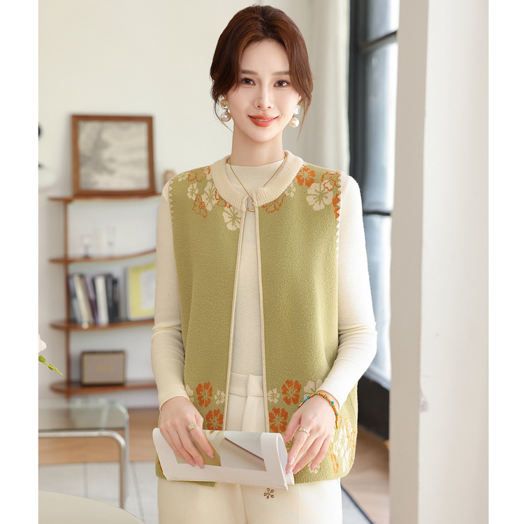 2025新款时尚短款外套拉链毛衣妈妈春装中老年女气质开衫大码上衣