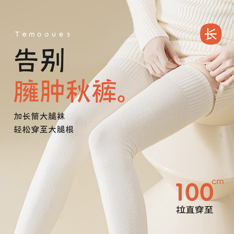 过膝袜子女春秋纯棉纱线长筒袜护膝袜加长加宽高筒防滑大腿袜秋冬