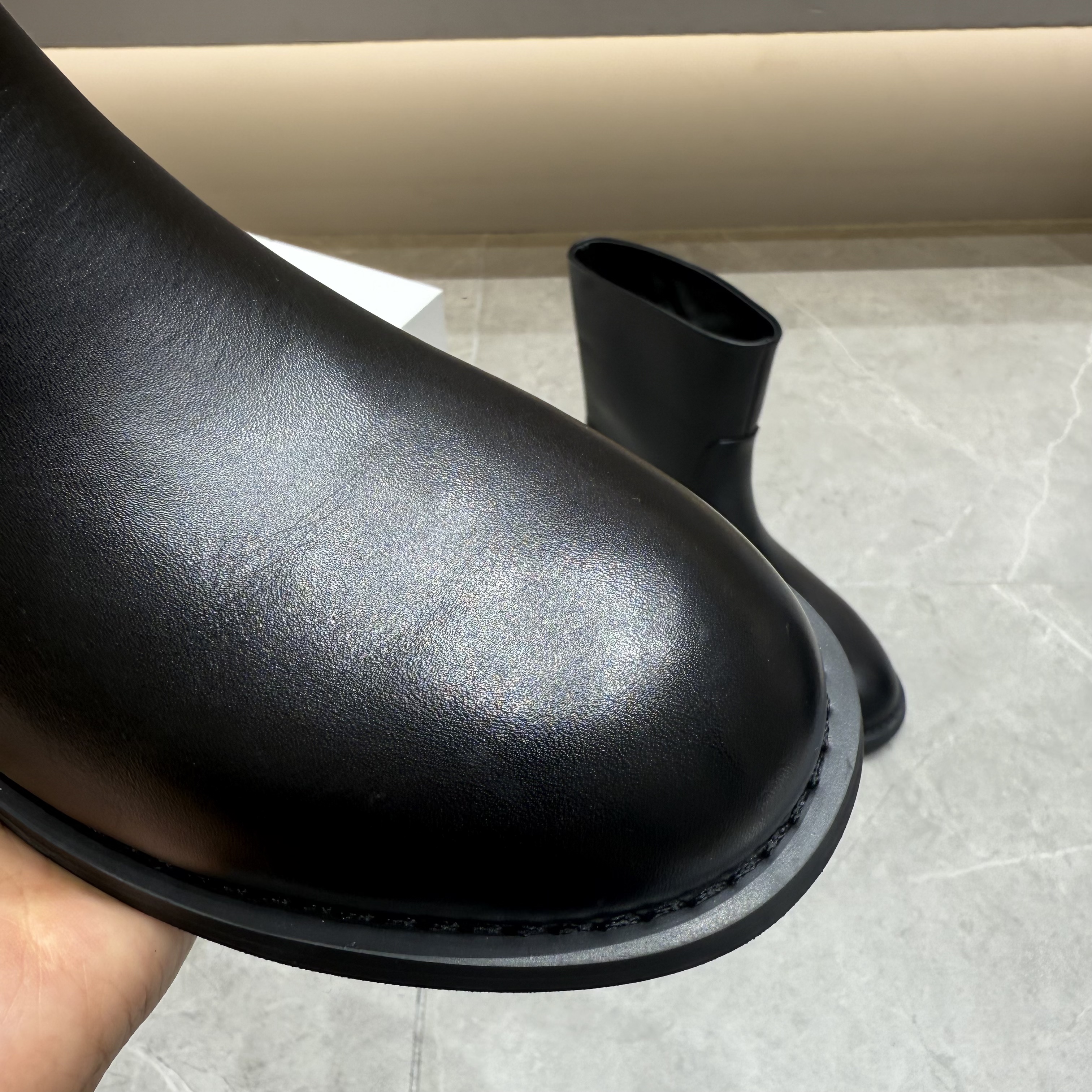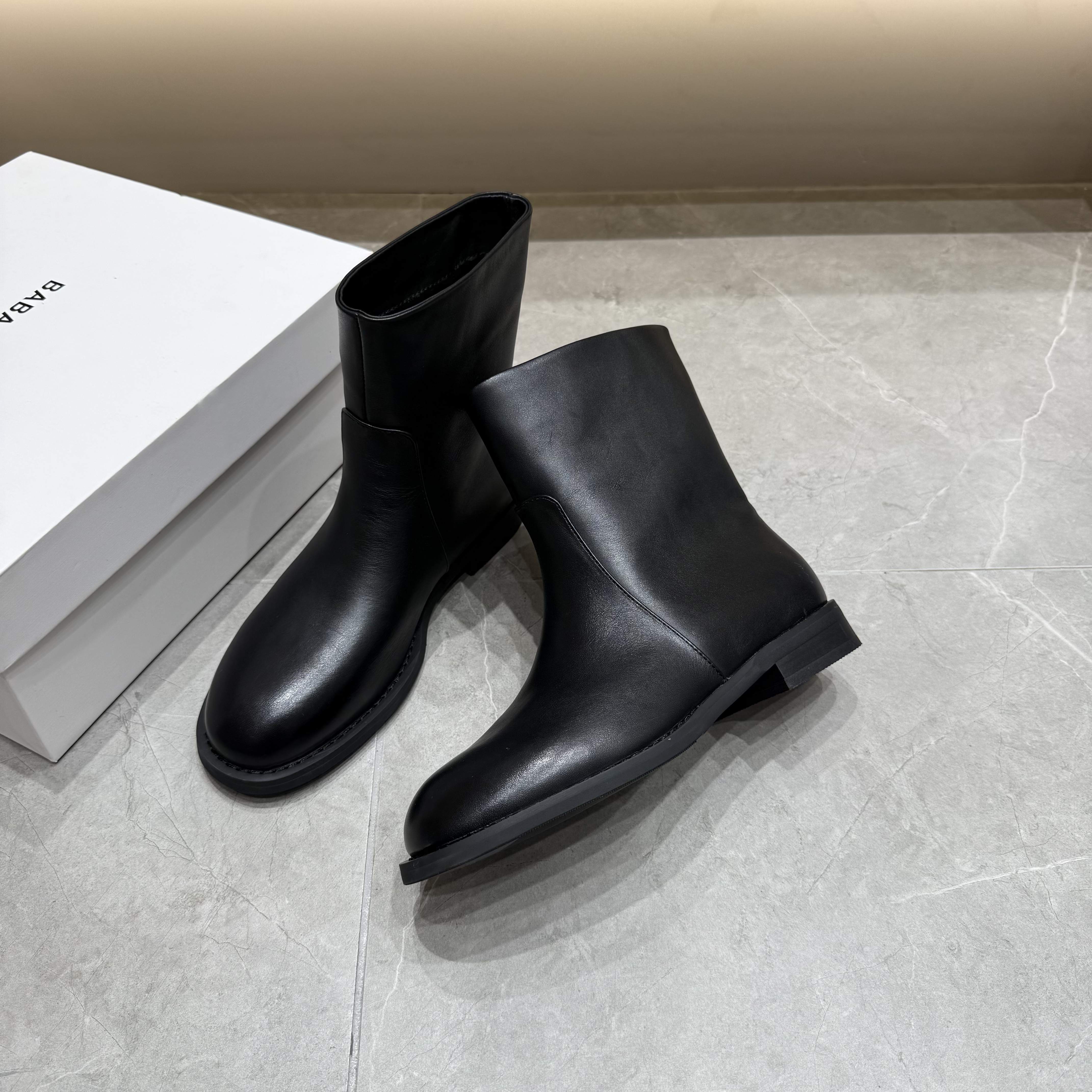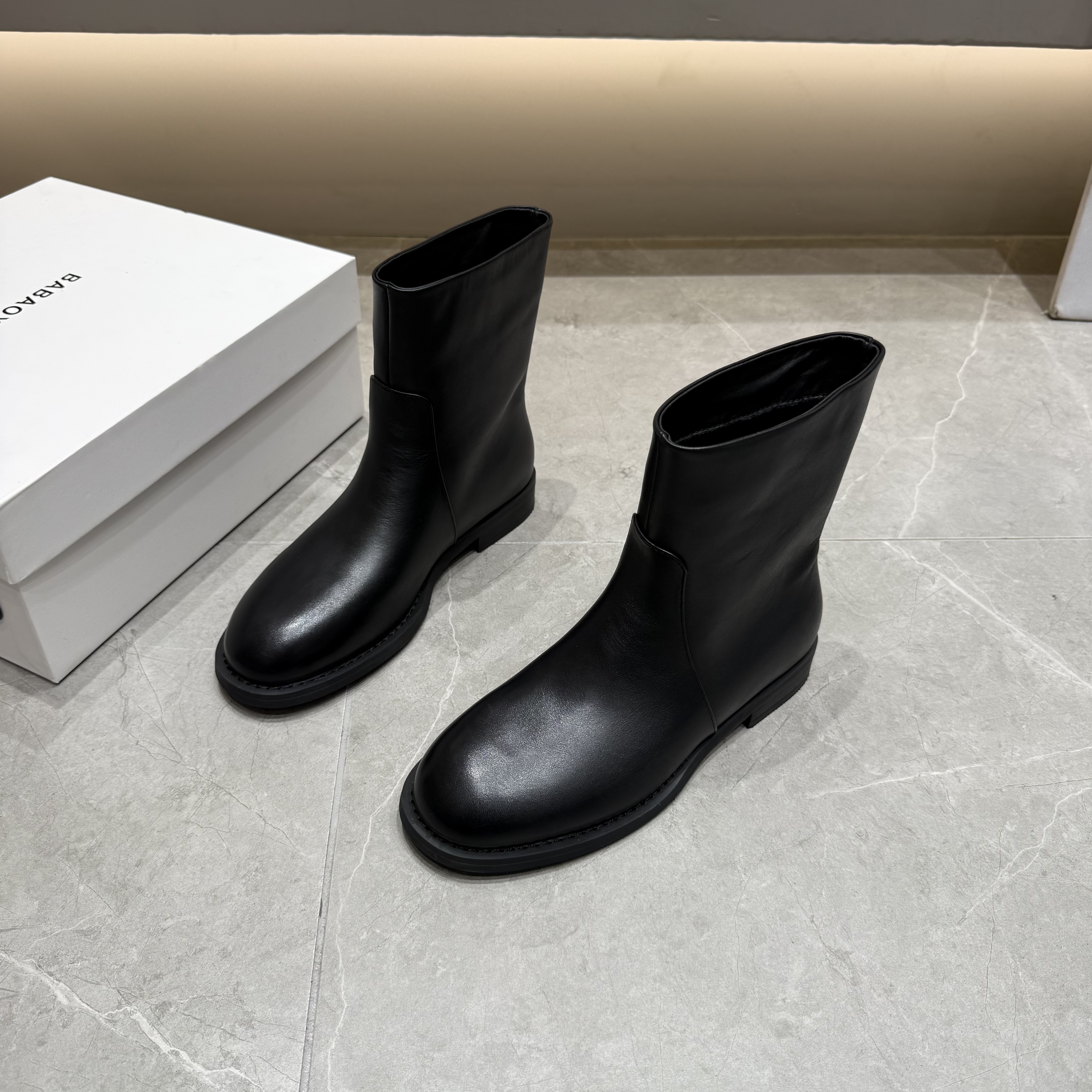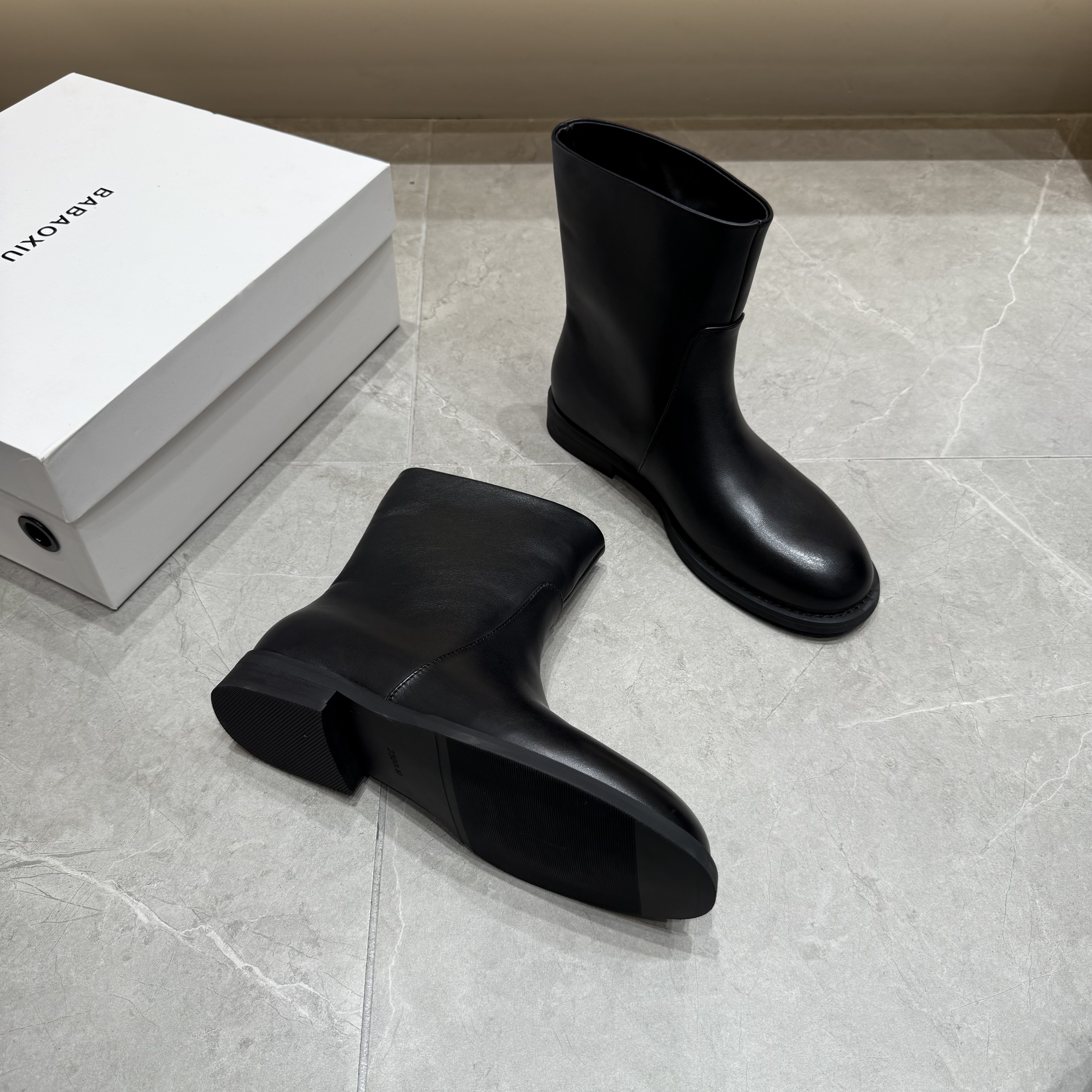 欧货真皮女靴2025冬新款胎牛皮平底时尚尖头中筒靴马丁靴短靴女潮