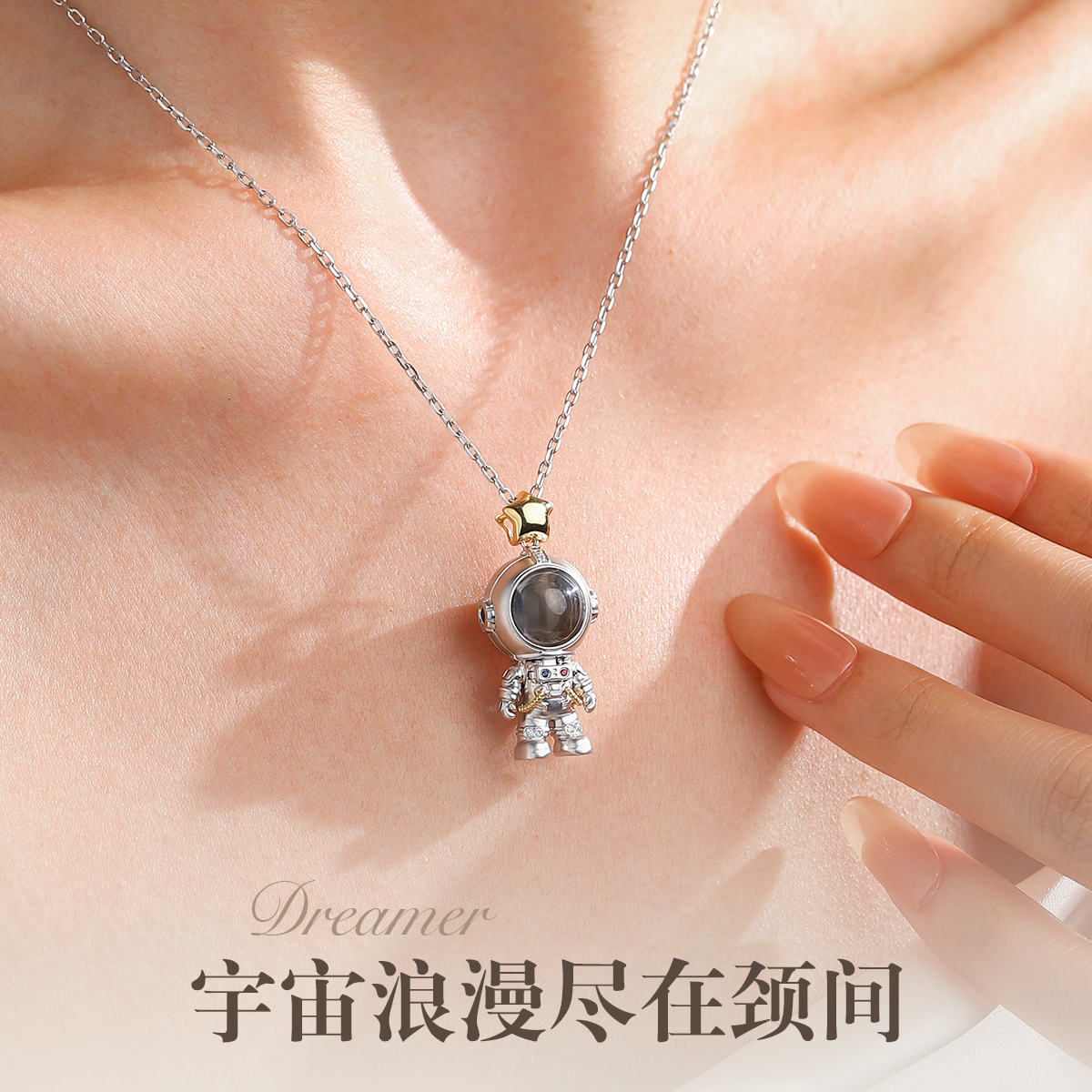 18K金梦想家钻石吊坠宇航员蓝宝石红宝石立体萌趣创意白金颈饰