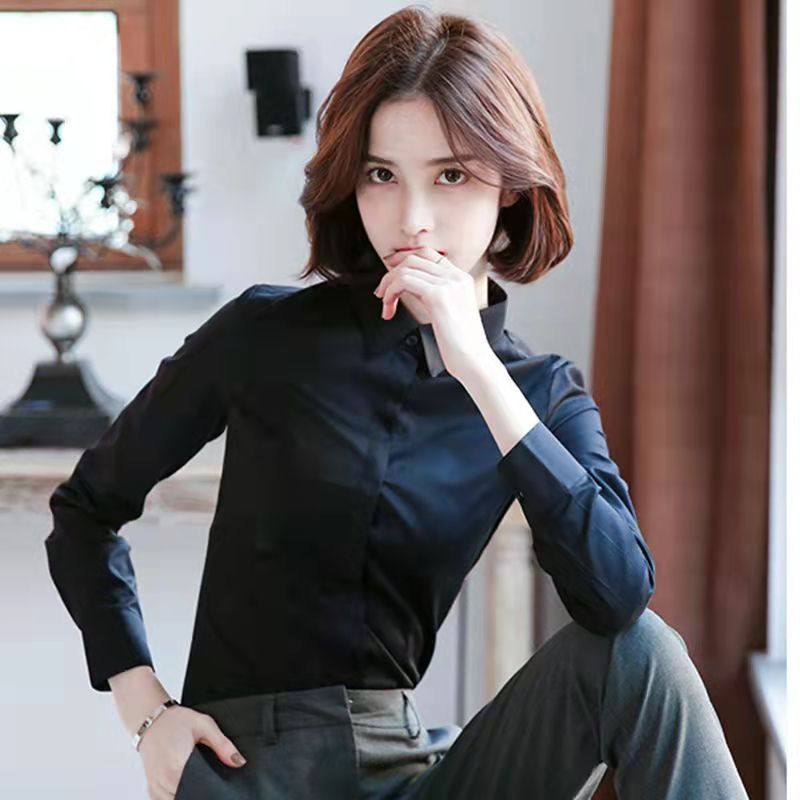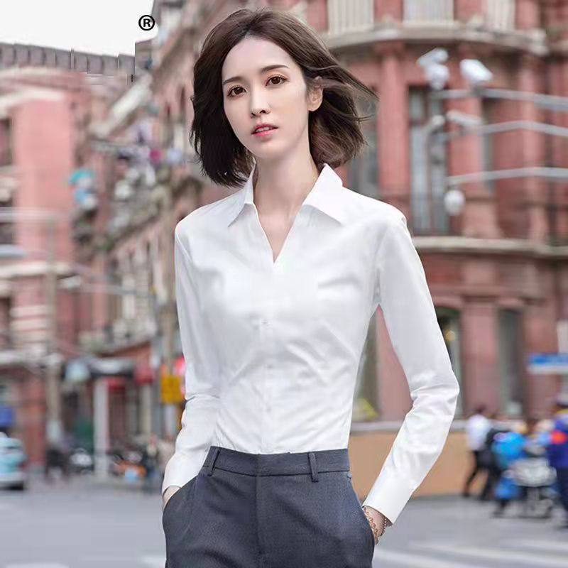V领黑色衬衫女长袖职业装2025秋季新款气质显瘦工装白衬衣工作服