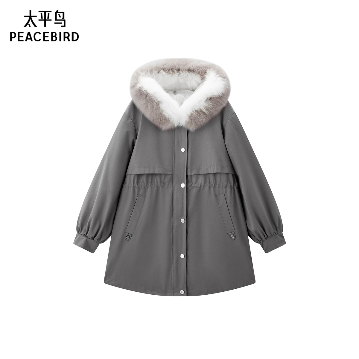 太平鸟女装皮草外套女小个子高级感双色毛领洋气时尚A1ADE4512
