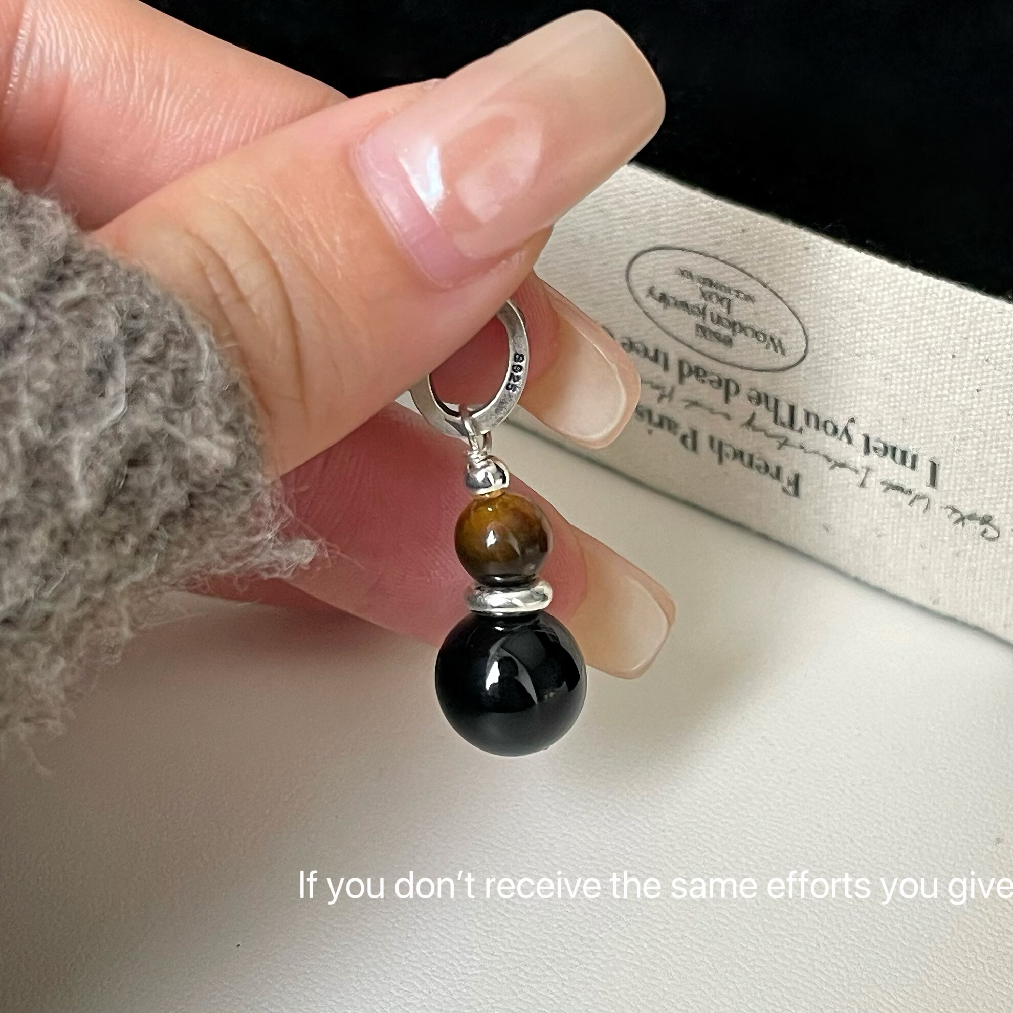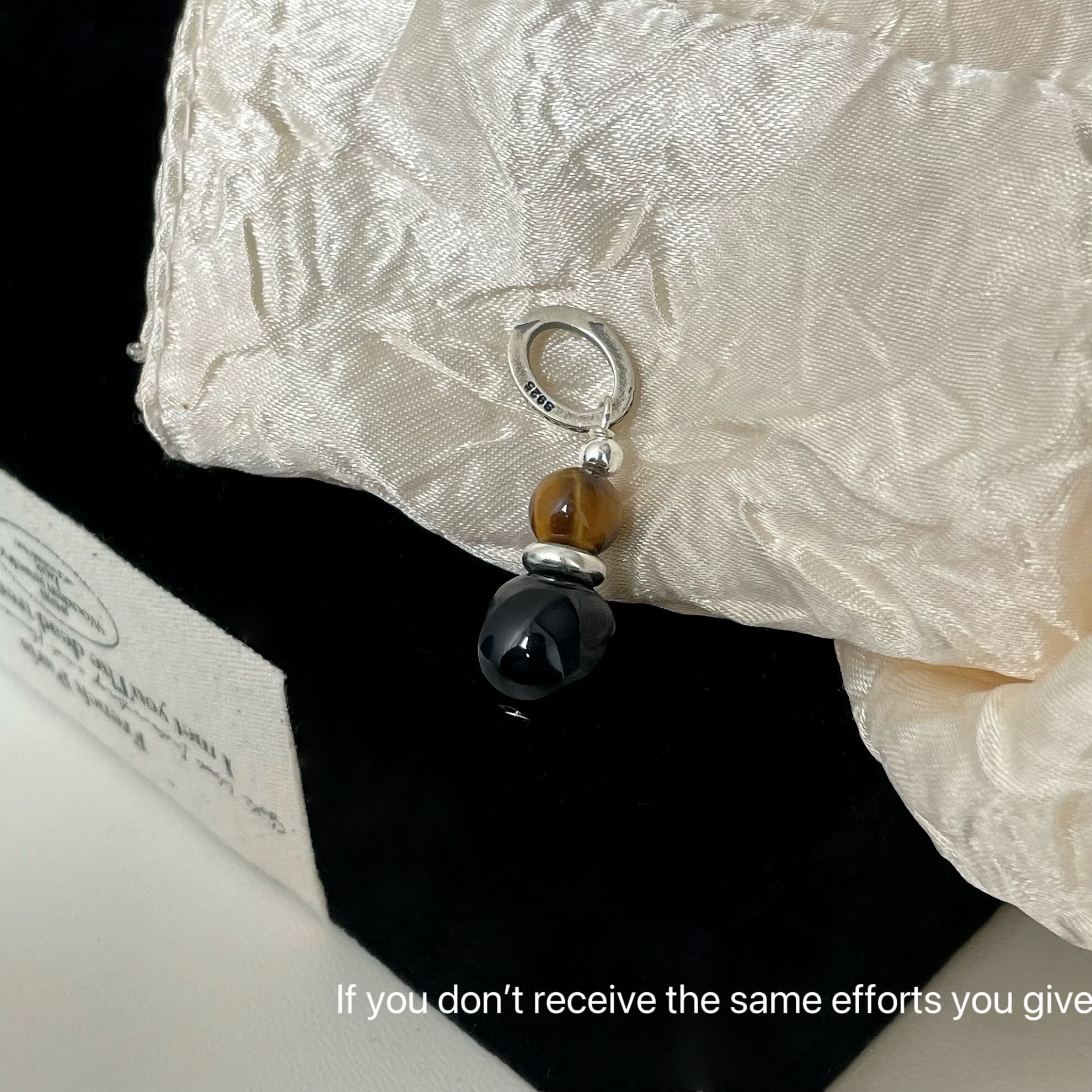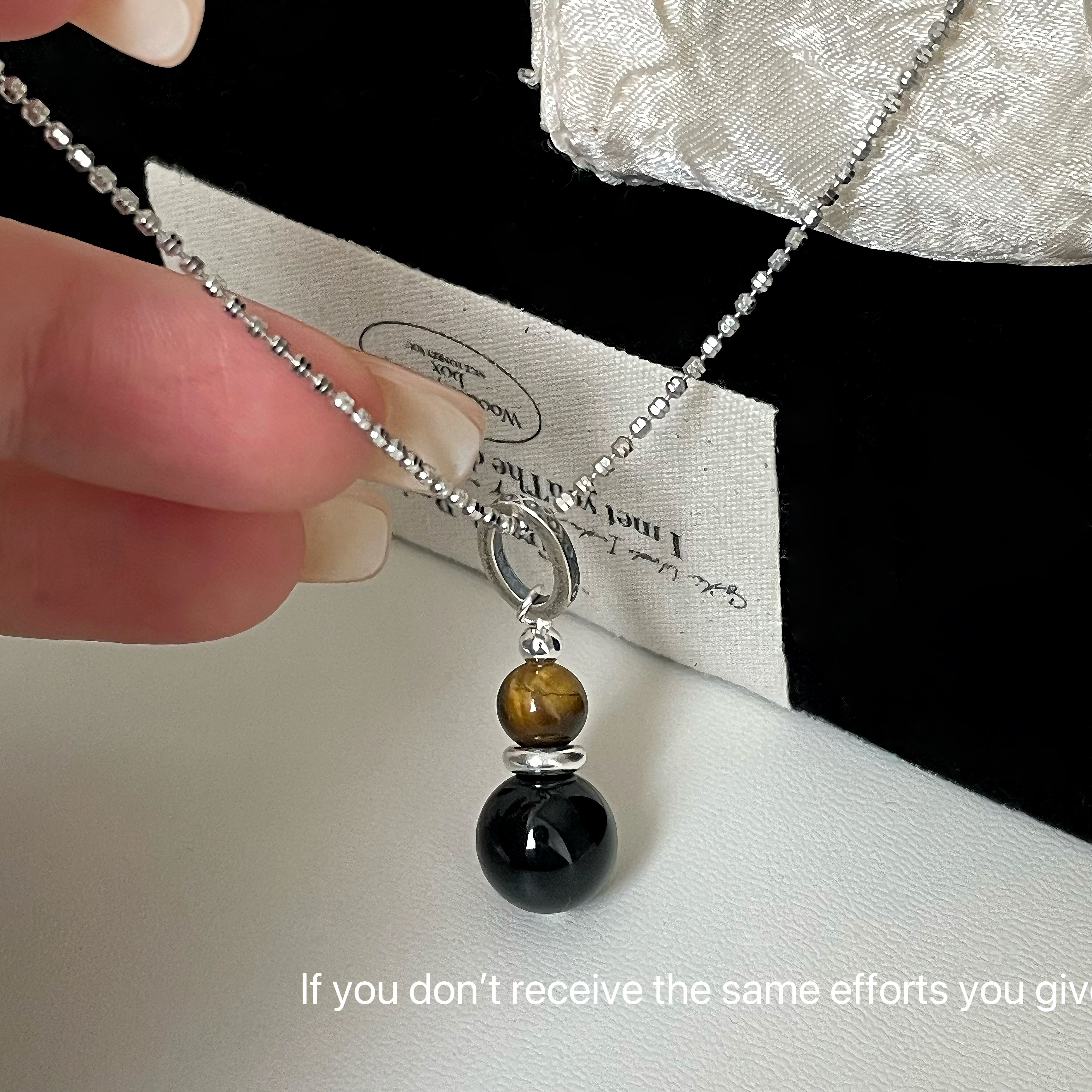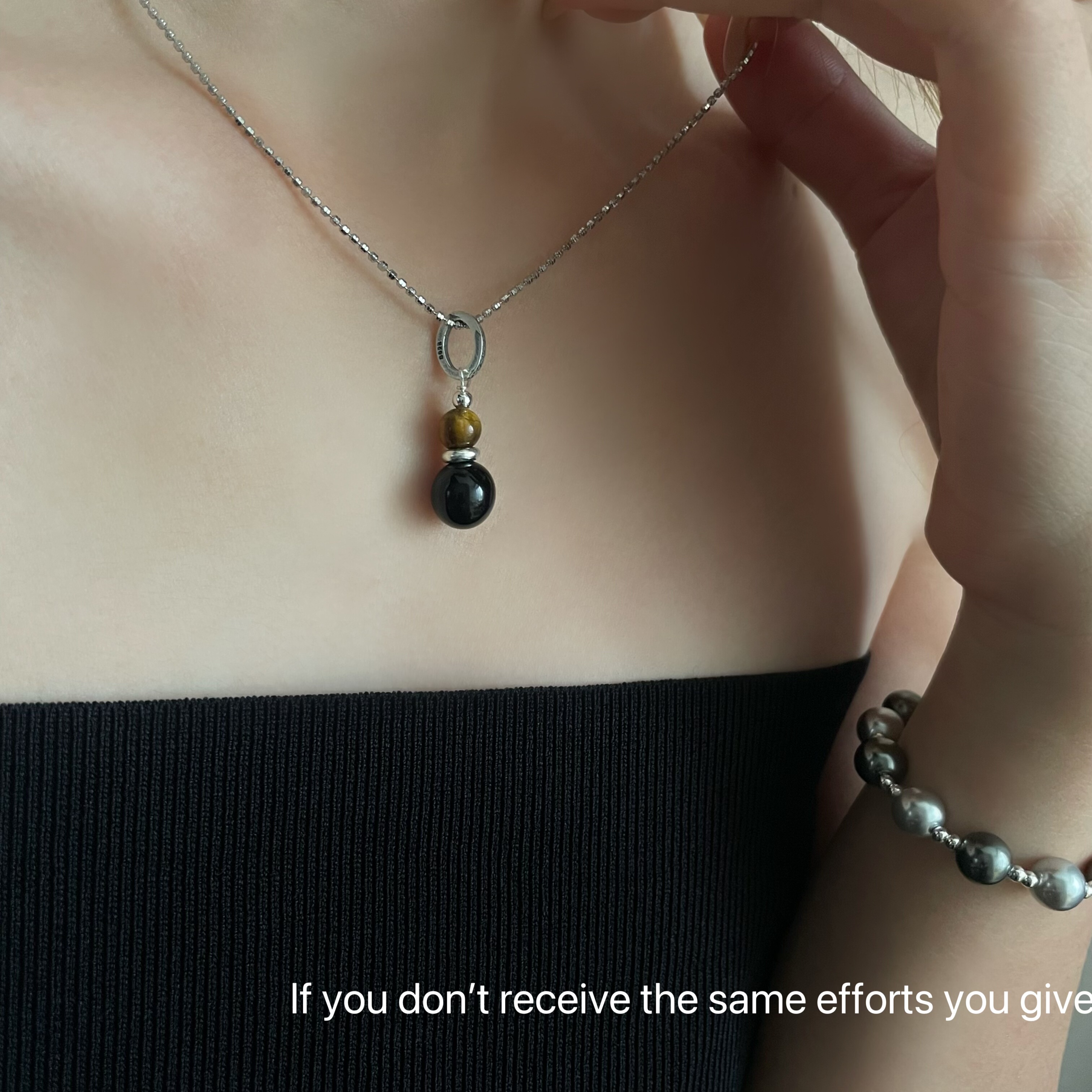 S925纯银黑玛瑙虎眼吊坠项链ins风小众设计高级轻奢时尚百搭
