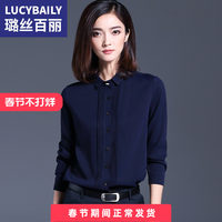 藏蓝色衬衫女长袖春秋法式别致新款洋气上衣职业女装工装气质衬衣