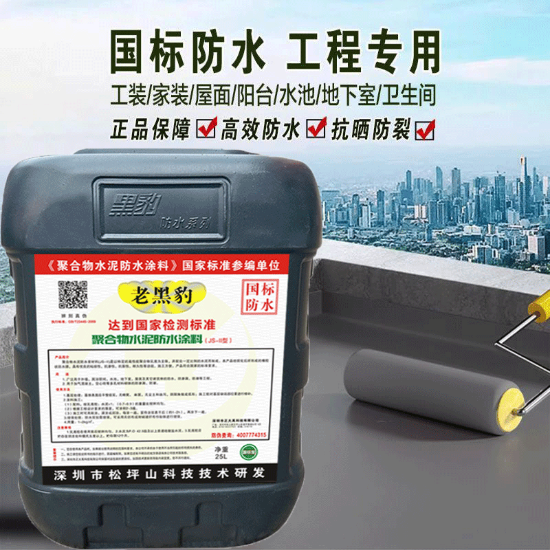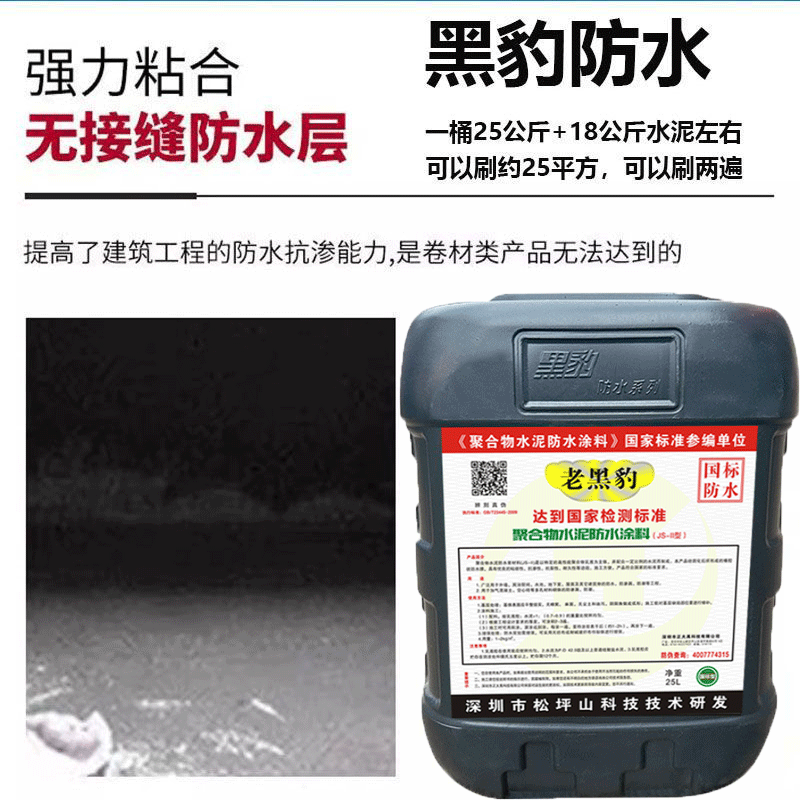 深圳正品黑豹防水涂料国标屋顶卫生间内外墙水池防潮防漏JS聚合物