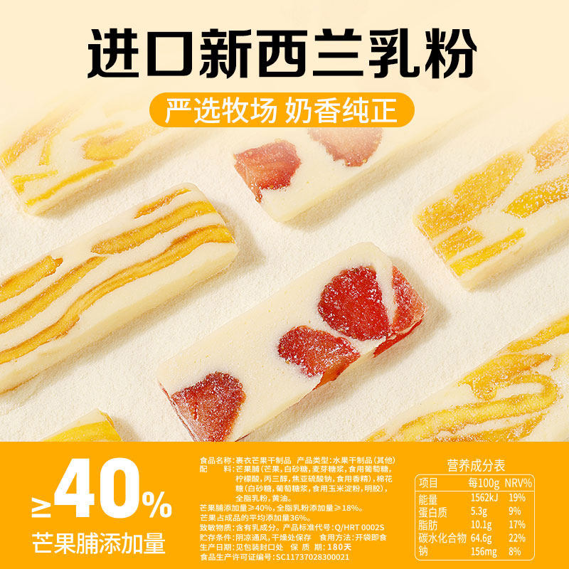 百草味厚乳奶香芒果草莓组合160g网红食品奶糕休闲果干蜜饯小零食