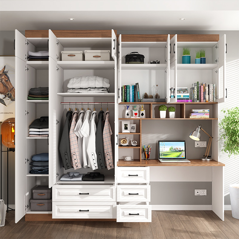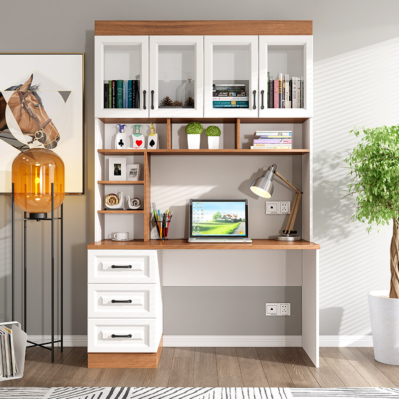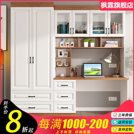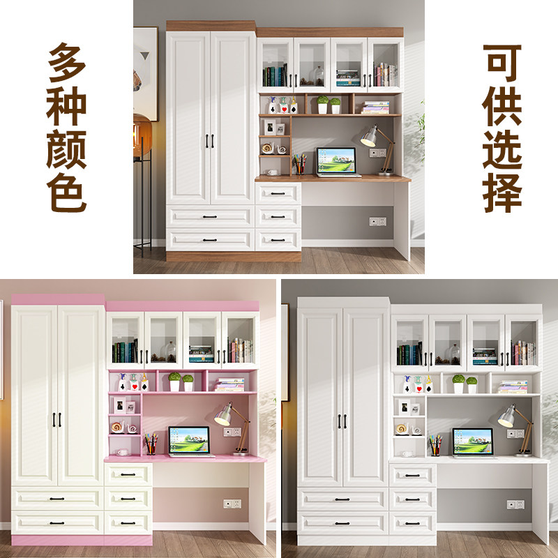 书房书柜儿童电脑桌书桌书架学生写字桌卧室两门衣柜W一体组合三