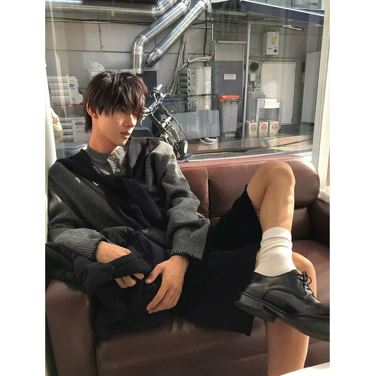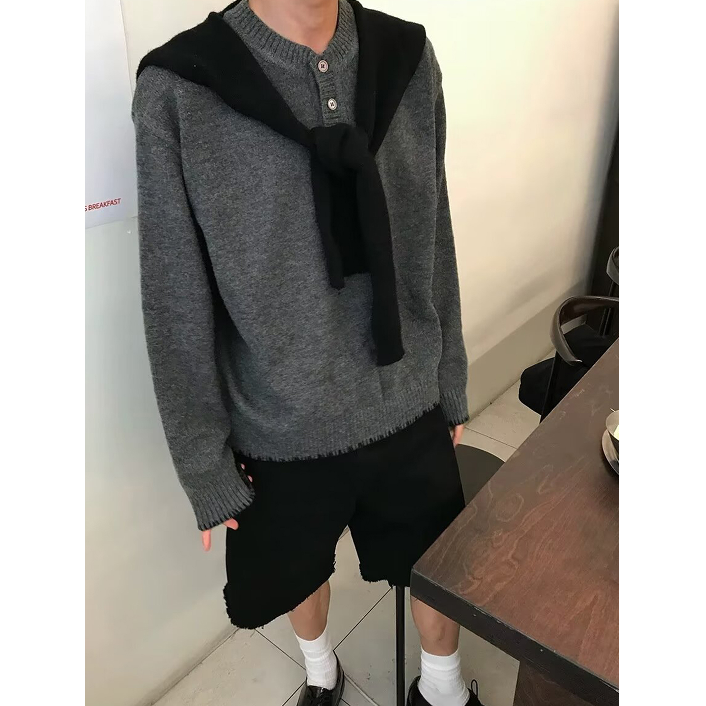 假两件披肩设计圆领毛衣男秋冬季韩系高级感宽松纯色休闲针织衫女