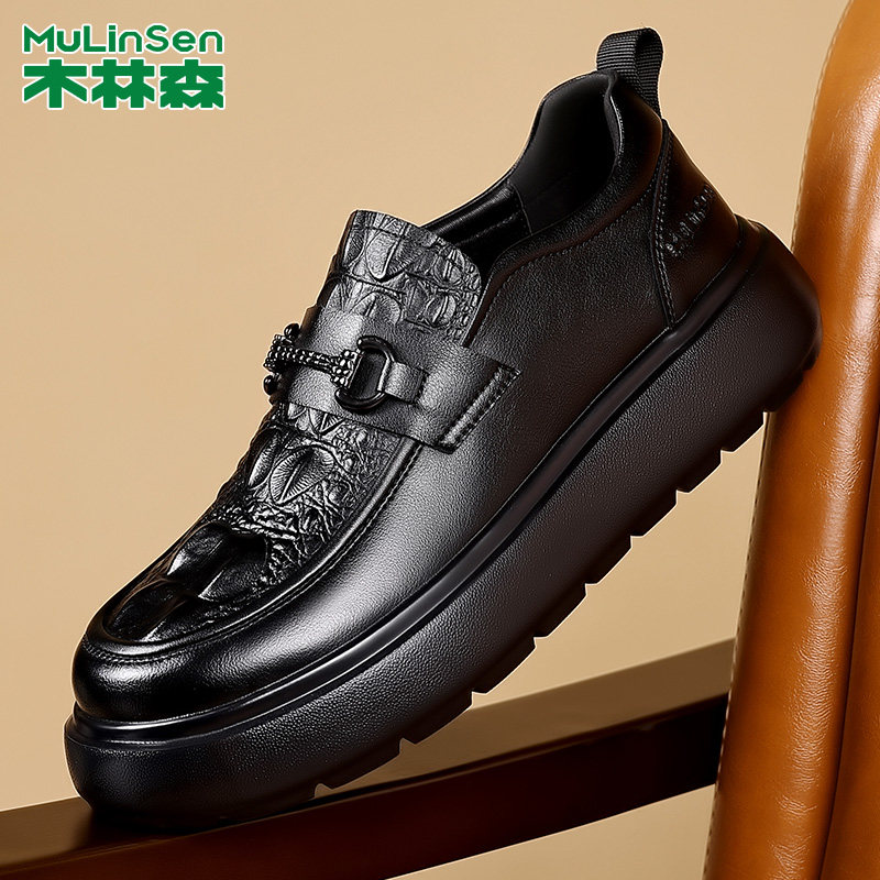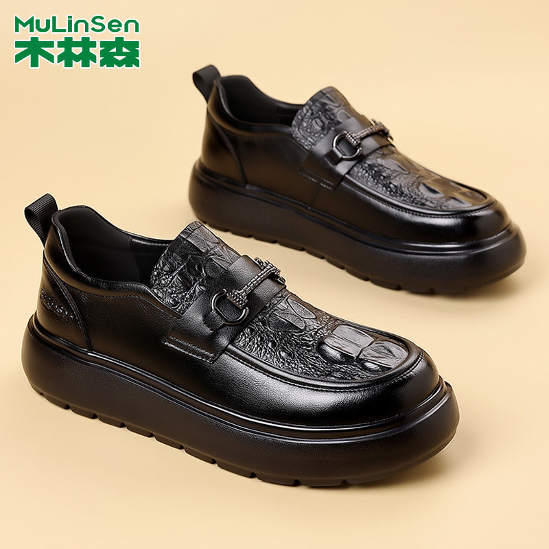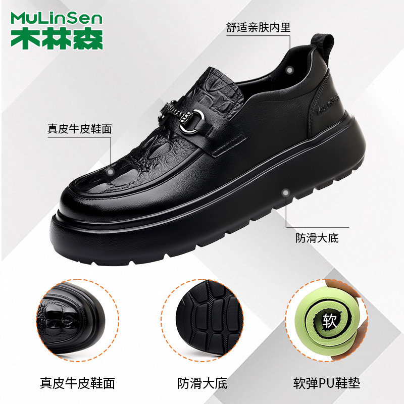 木林森皮鞋男2026新款休闲百搭真皮男鞋增高厚底男士一脚蹬乐福鞋