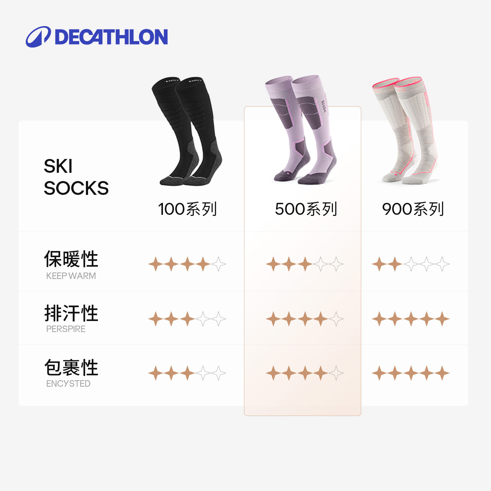 迪卡侬专业压力包裹羊毛滑雪袜