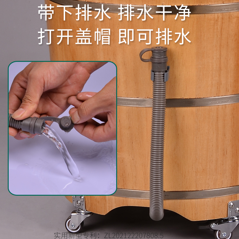 橡木泡脚木桶洗脚足浴木盆家用高深桶50高过小腿带排水轮子按摩盆