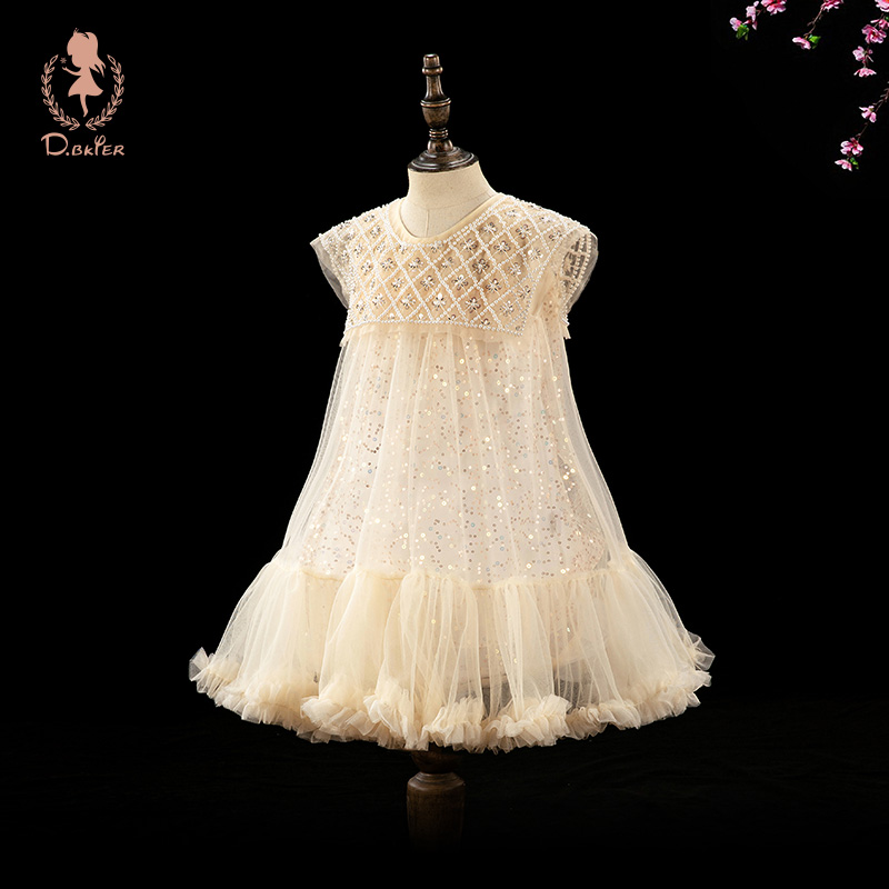 sesameclub女童公主裙礼服儿童女孩网纱高端连衣裙高定中长款裙子