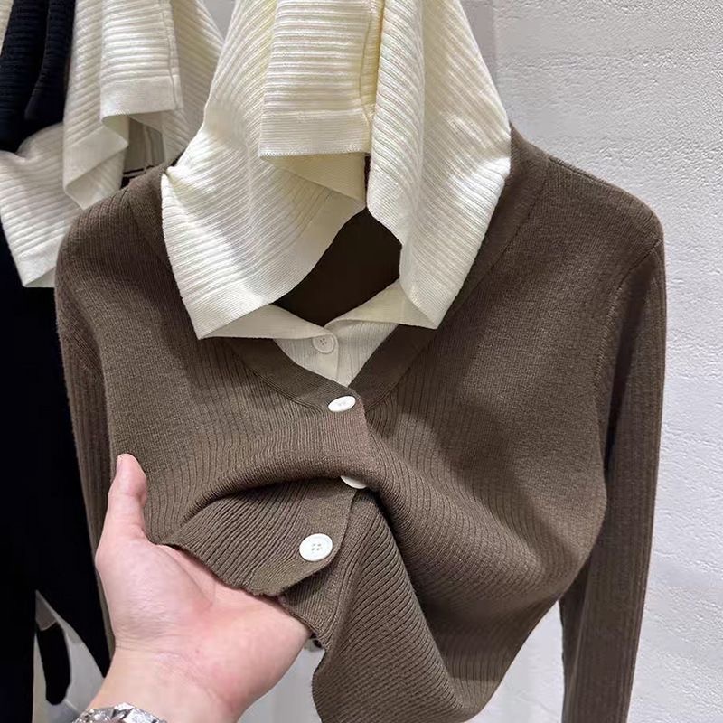 学院风大码连帽针织开衫女秋季2024慵懒风宽松显瘦假两件毛衣外套