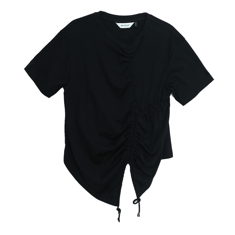 【商场同款】MOVEUP幻走2025夏季新款纯棉落肩弧形抽褶短款T恤女
