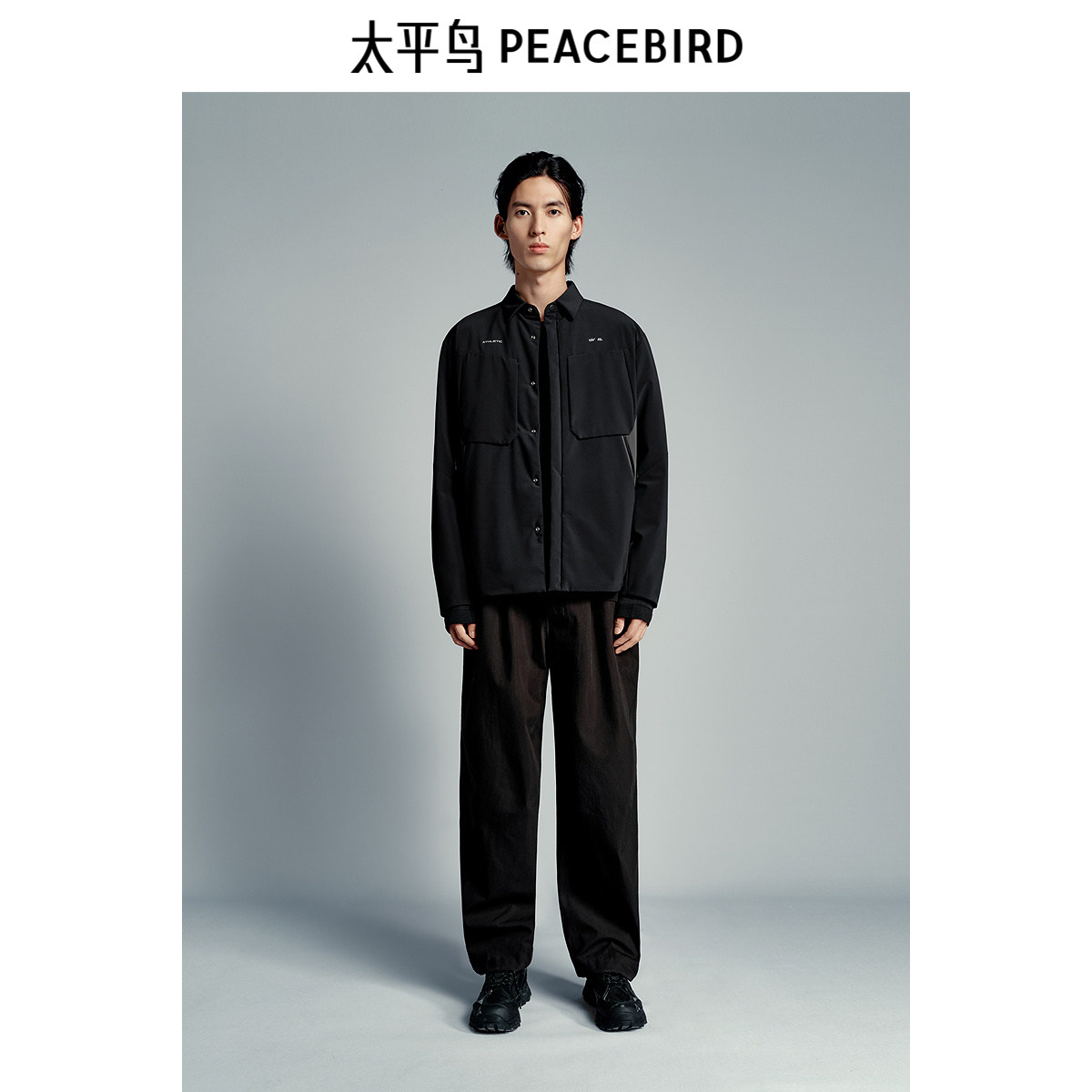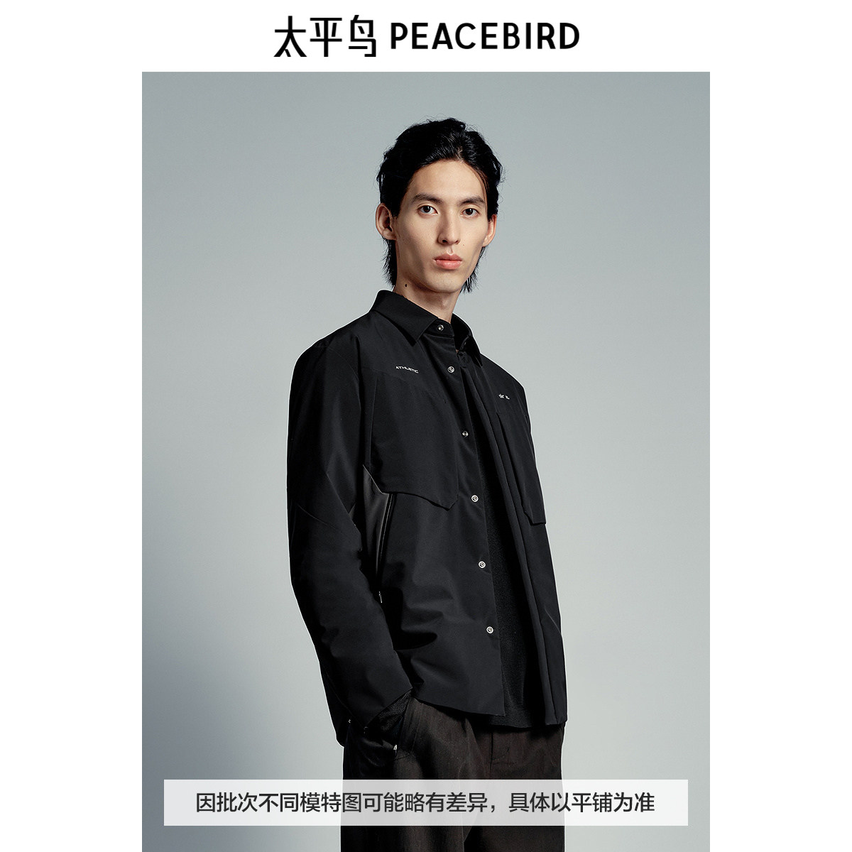 太平鸟男装冬季90白鸭绒外套潮流工装拼色轻薄衬衫式羽绒服潮