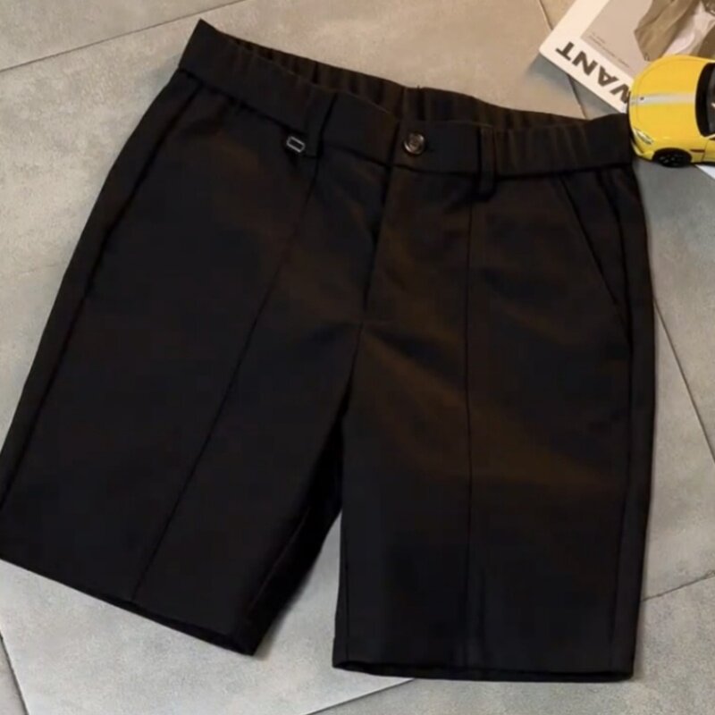 夏季重磅斜纹棉肌理感休闲短裤男时尚百搭宽松透气纯色直筒五分裤