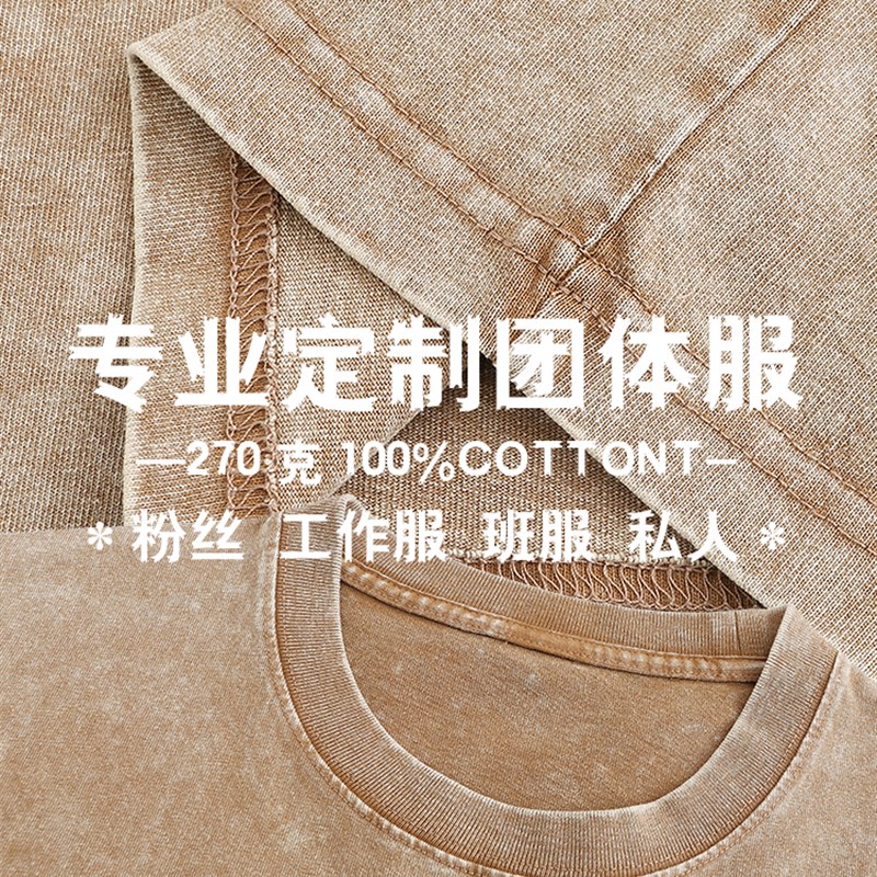 300g洗水做旧重磅纯棉t恤工作服定制美式潮牌班服diy印字logo刺绣