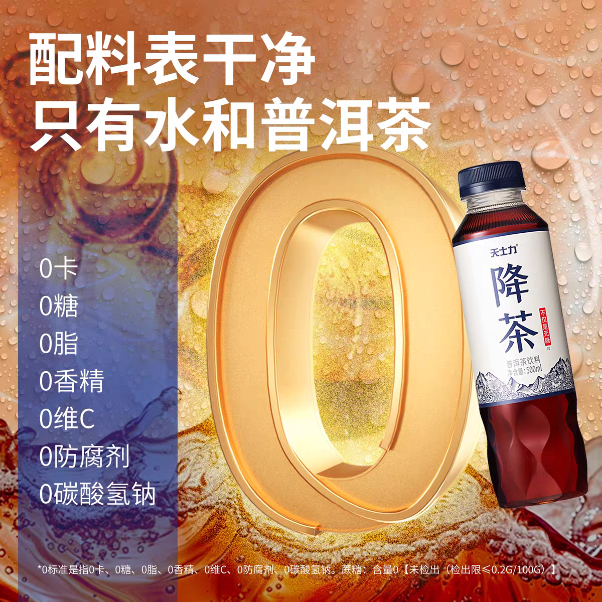 天士力旗舰店降茶普洱健康无糖纯茶饮料高倍茶褐素饮品15瓶整箱装