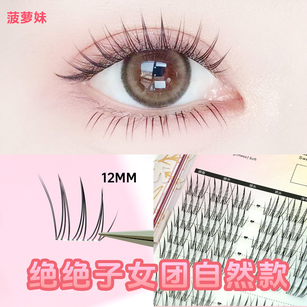菠萝妹假睫毛分段根根分明ACE漫画眼女团上睫毛簇感日常仿真新手