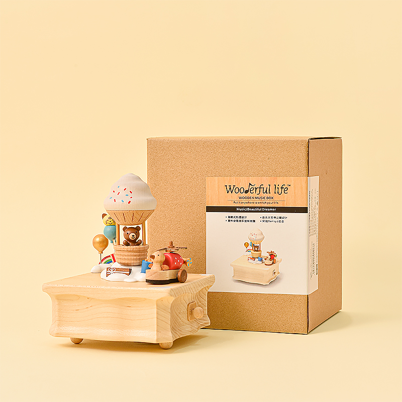 森活木趣热气球音乐盒摆件刻字八音盒儿童同学女孩生日礼物女生