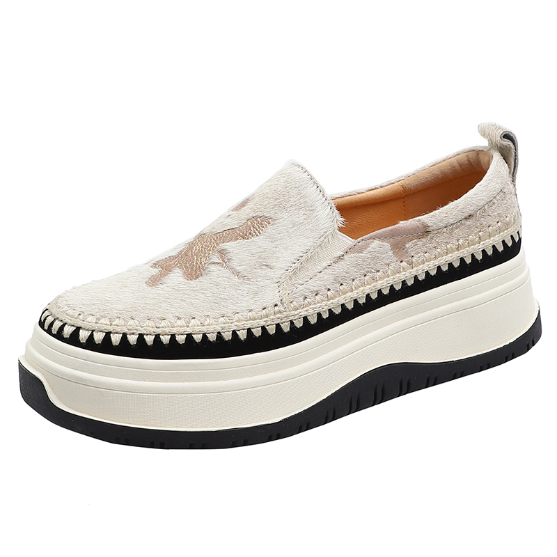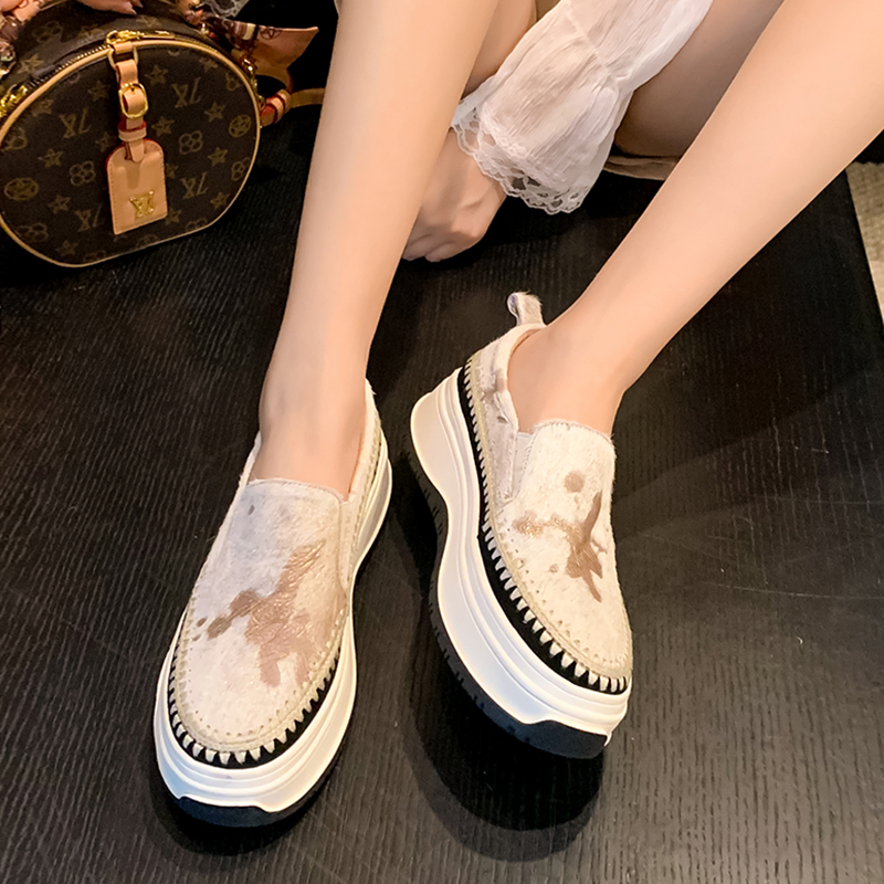 厚底草编乐福鞋2025春新款真皮马毛拼色懒人鞋休闲坡跟松糕底单鞋
