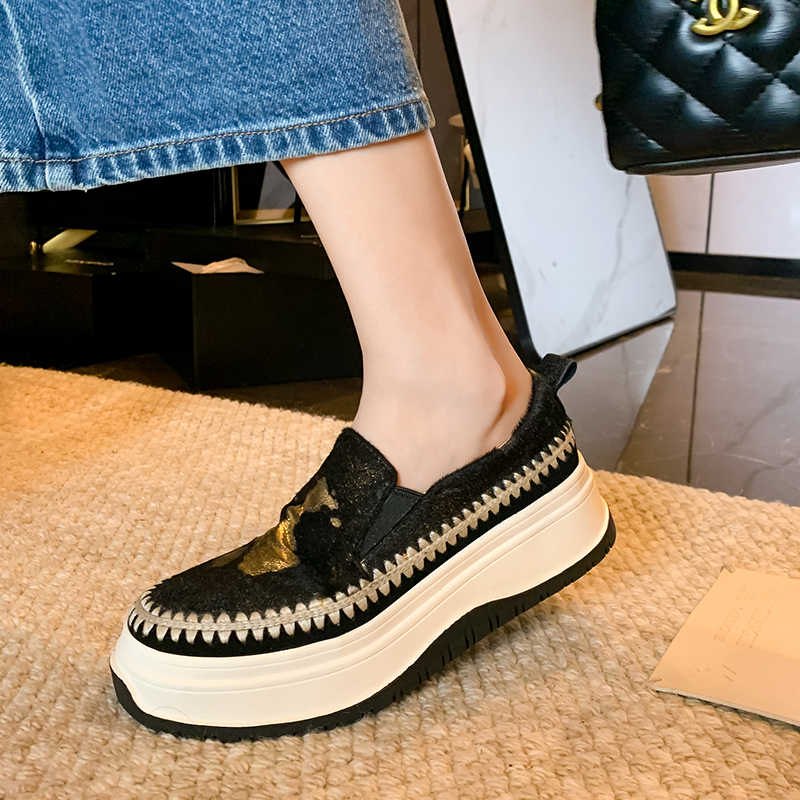 拼色懒人鞋休闲坡跟松糕底单鞋