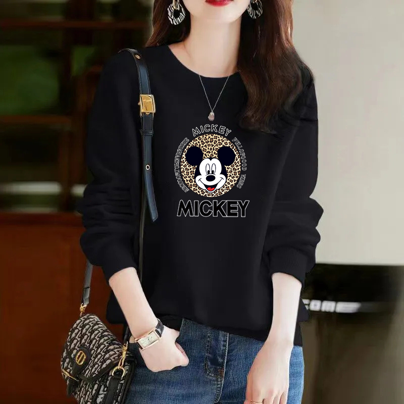 高级浅灰韩版纯棉女装米奇印花卫衣女加绒加厚百搭学生圆领上衣服