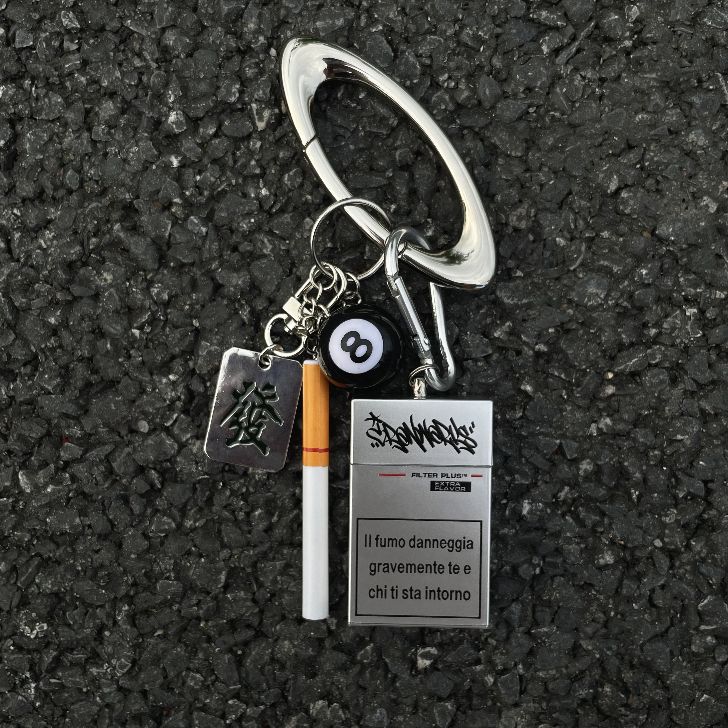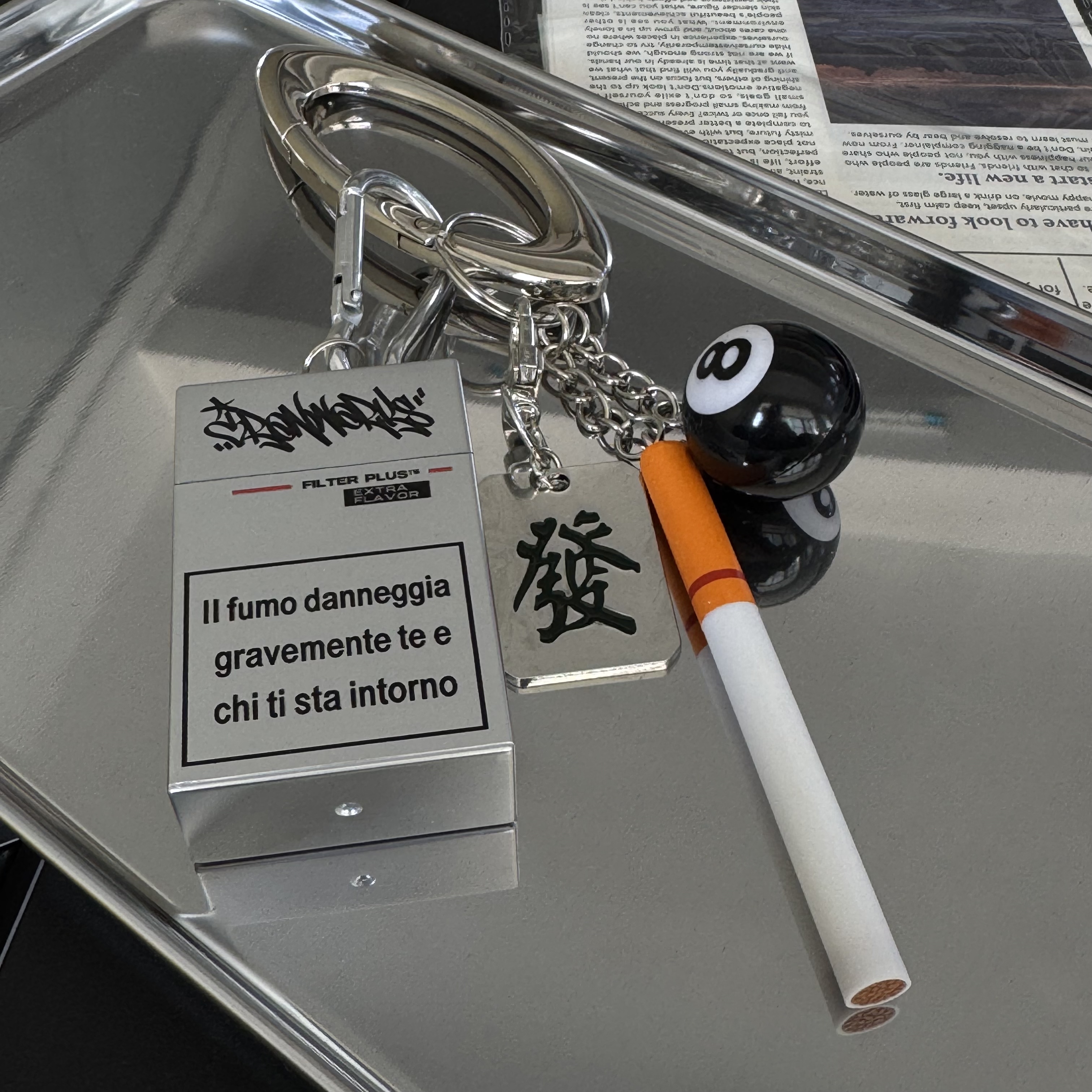 cleanfit仿真烟灰盒钥匙链挂件个性包挂黑8发财创意百搭腰间配饰