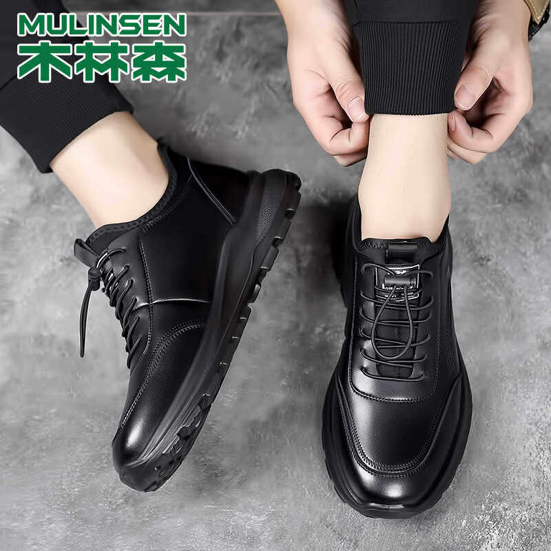 木林森透气男士软底百搭休闲皮鞋