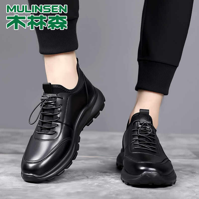 木林森男鞋2025新款真皮休闲皮鞋男透气软底男士潮流百搭运动鞋子