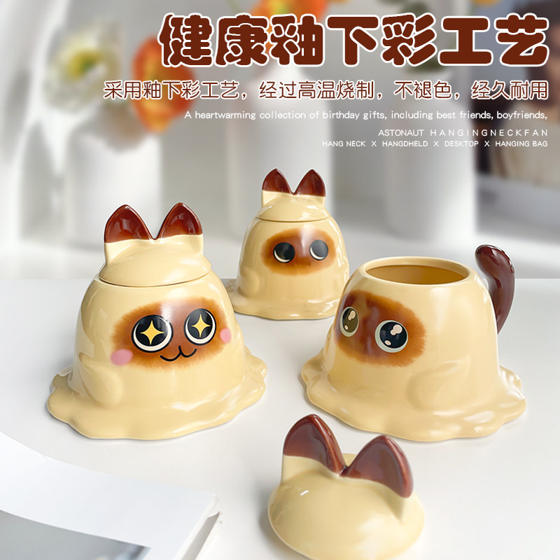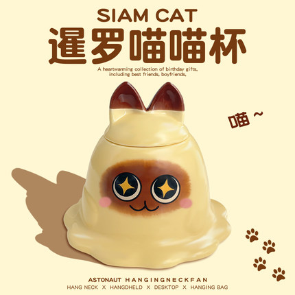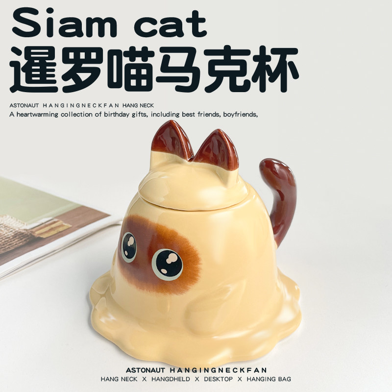 暹罗猫杯子马克杯带盖送女生生日礼物创意可爱陶瓷实用情人节礼物