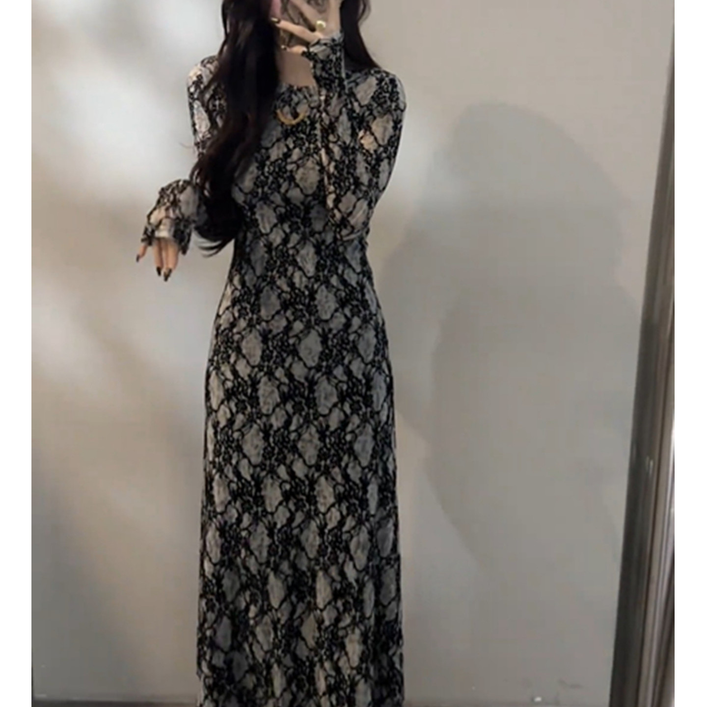 巨好看绝美蕾丝加厚长袖连衣裙
