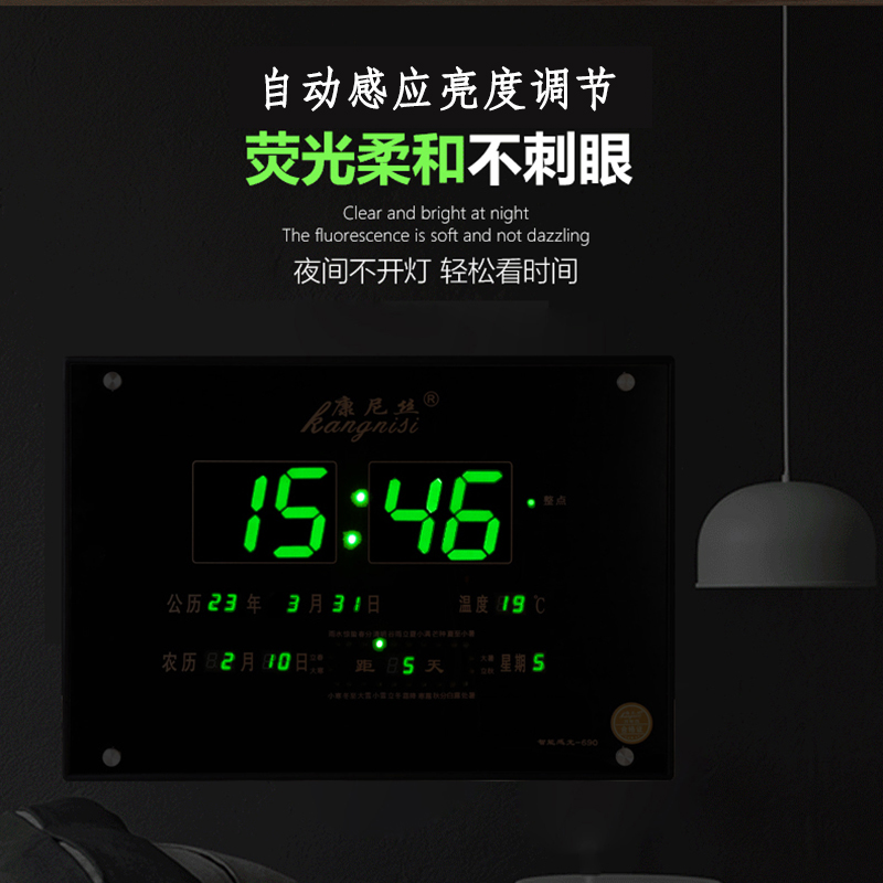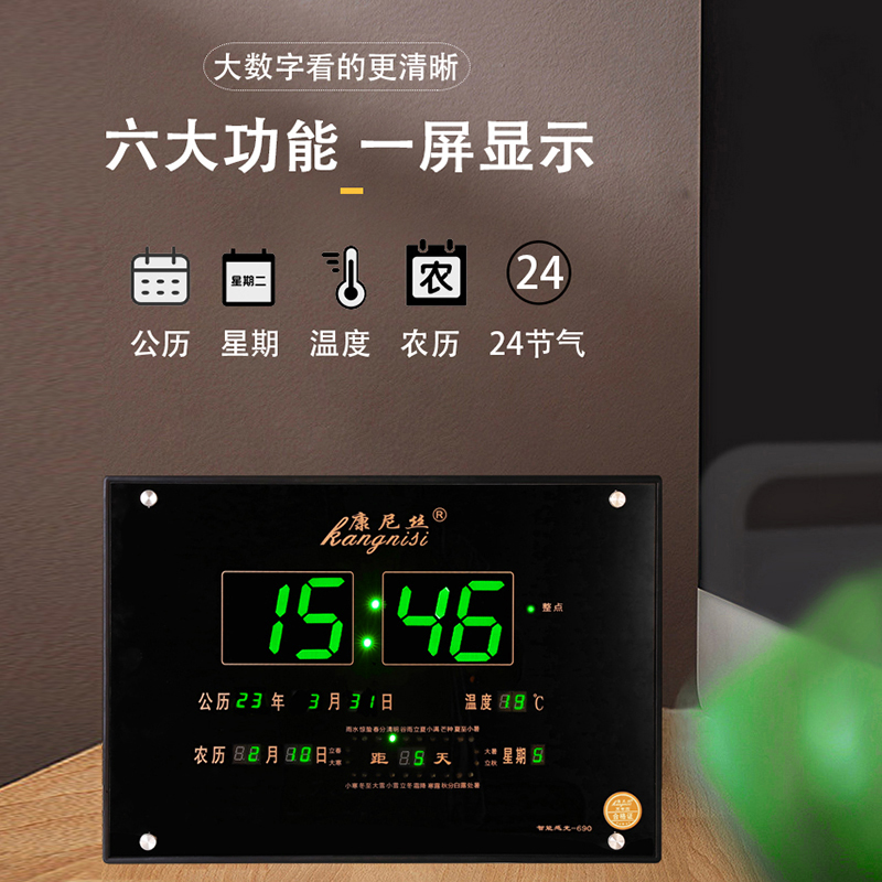 静音数码电子万年历挂钟日历钟led钟表节气静音夜光家用客厅简约
